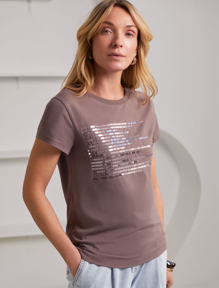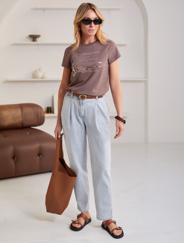 Плотность: 150 Г/м2 Футболка кофейного цвета идеально подходит для вечеринки и создания яркого образа. Оригинальный принт из пайеток придает изделию шикарный вид, который привлечет внимание на любом мероприятии. Модель с круглым вырезом и классическим коротким рукавом обеспечивает свободу движений и комфорт в носке. Такой фасон изделия подходит на большие размеры, гармонично сидит на фигуре и помогает создать легкий акцент на достоинствах. Аккуратный круглый вырез красиво подчеркивает шею и делает образ элегантным, сохраняя актуальность для разных случаев — от рабочих встреч до вечерних прогулок и праздничных мероприятий. Модель изготовлена из премиального хлопка с добавлением эластана. Добавление эластана в состав изделия способствует формоустойчивости. Эта нарядная футболка подходит для создания образа на каждый день и идеально подойдет на выход. Модель не мнется, что делает ее практичным вариантом для активных женщин, которые ценят стиль и удобство. Женская футболка подчеркнет вашу индивидуальность и позволит вам выглядеть привлекательно в любой ситуации. Легкость в уходе и высокая износостойкость делают ее незаменимой вещью в вашем гардеробе. Благодаря сочному дизайну и качественной отделке, футболка легко сочетается с различными элементами гардероба, позволяя создавать уникальные комплекты для разных случаев. Она станет ярким акцентом в вашем гардеробе и подарит уверенность на любом событии. Такой вариант одежды станет отличной базой для стильного и эффектного образа на праздничное событие, корпоратив, Новый Год. Комментарии к товару