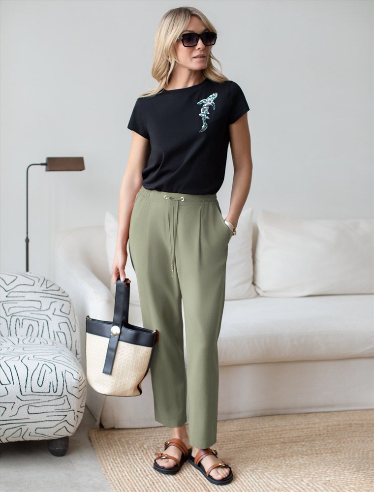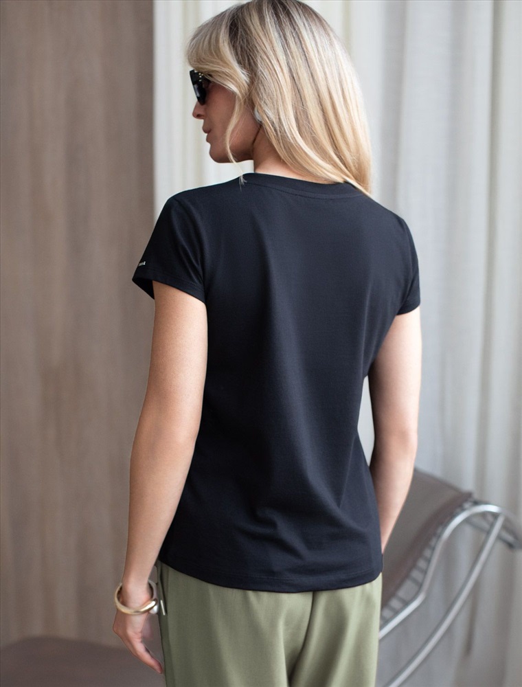 Эта нарядная футболка подходит для создания образа на каждый день и идеально подойдет на выход. Модель не мнется, что делает ее практичным вариантом для активных женщин, которые ценят стиль и удобство.