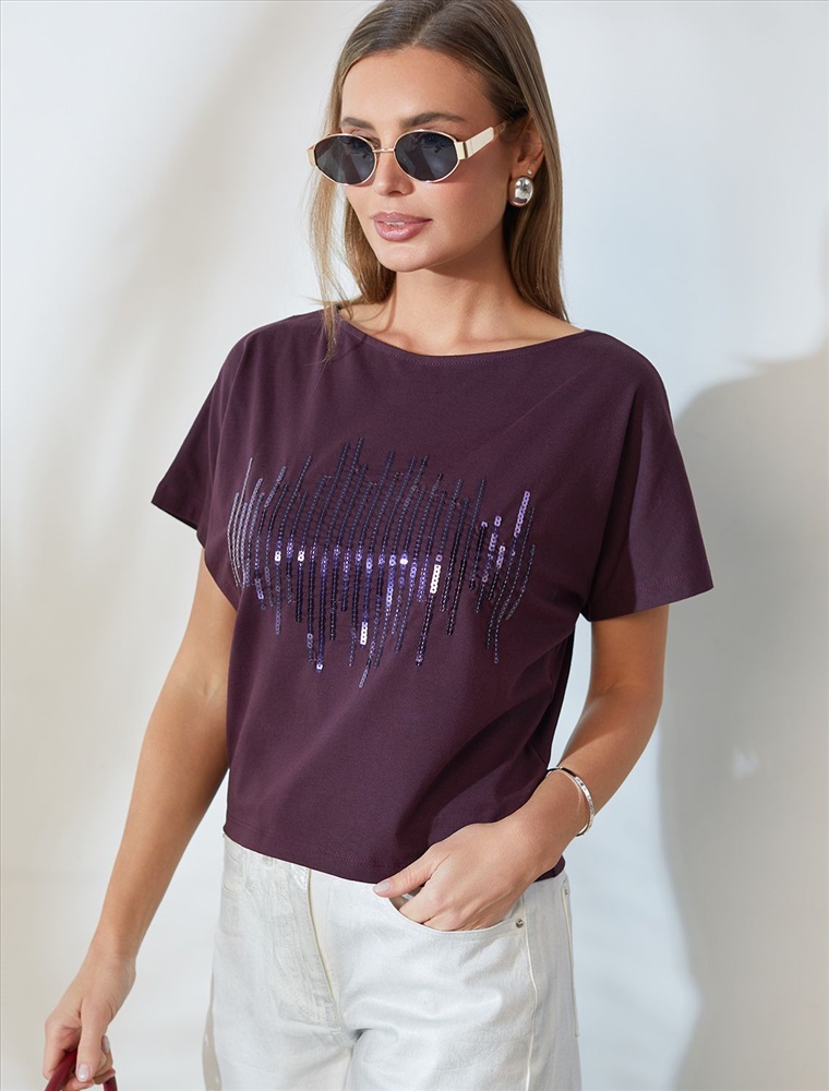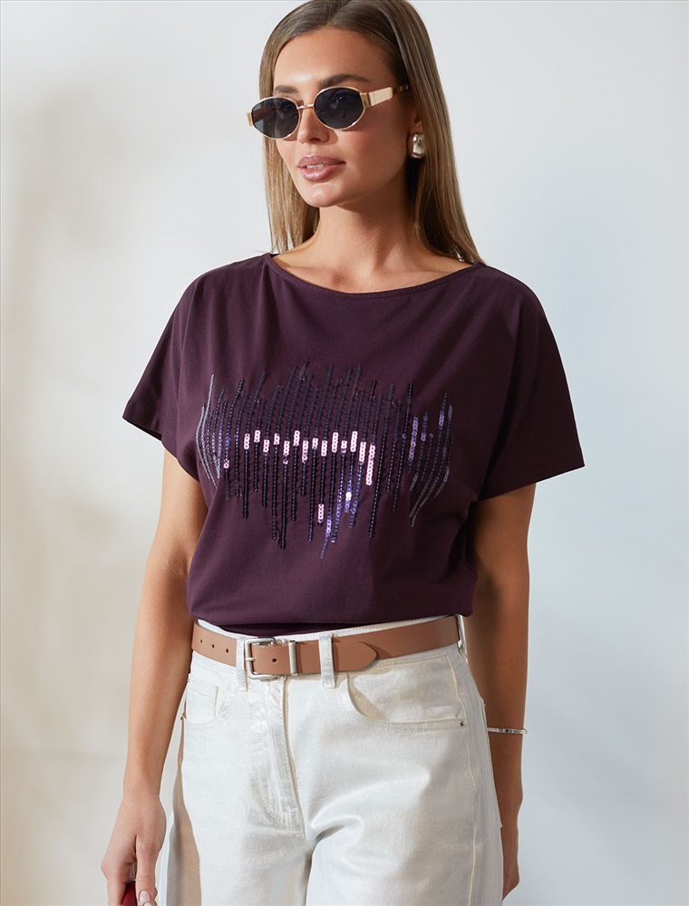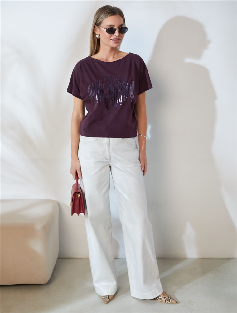 Плотность: 150 Г/м2 Футболка цвета бургунди идеально подходит для вечеринки и создания яркого образа. Оригинальный принт из блестящих пайеток в виде дождика придает изделию шикарный вид, который привлечет внимание на любом мероприятии. Модель с вырезом лодочка и цельнокроеным рукавом обеспечивает свободу движений и комфорт в носке. Такой фасон изделия подходит на большие размеры, гармонично сидит на фигуре и помогает создать легкий акцент на достоинствах. Благодаря особенностям кроя с цельнокроеным рукавом удается искусно скроет любые возможные недостатки в области плеч и рук, обеспечивая комфортное прилегание без ощущения скованности. Аккуратный вырез лодочка красиво подчеркивает шею и делает образ элегантным, сохраняя актуальность для разных случаев — от рабочих встреч до вечерних прогулок и праздничных мероприятий. Модель изготовлена из премиального хлопка с добавлением эластана. Добавление эластана в состав изделия способствует формоустойчивости. Эта нарядная футболка подходит для создания образа на каждый день и идеально подойдет на выход. Модель не мнется, что делает ее практичным вариантом для активных женщин, которые ценят стиль и удобство. Женская футболка подчеркнет вашу индивидуальность и позволит вам выглядеть привлекательно в любой ситуации. Легкость в уходе и высокая износостойкость делают ее незаменимой вещью в вашем гардеробе. Благодаря сочному дизайну и качественной отделке, футболка легко сочетается с различными элементами гардероба, позволяя создавать уникальные комплекты для разных случаев. Она станет ярким акцентом в вашем гардеробе и подарит уверенность на любом событии. Такой вариант одежды станет отличной базой для стильного и эффектного образа на праздничное событие, корпоратив, Новый Год. Комментарии к товару