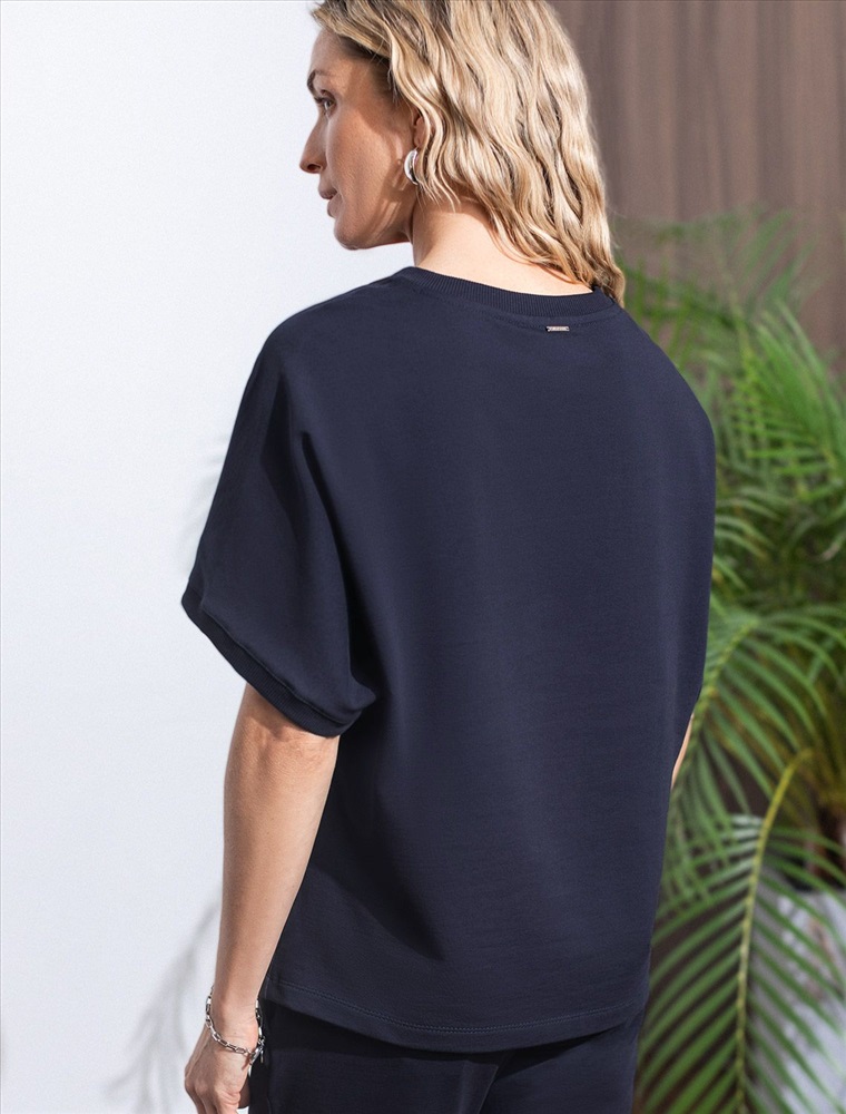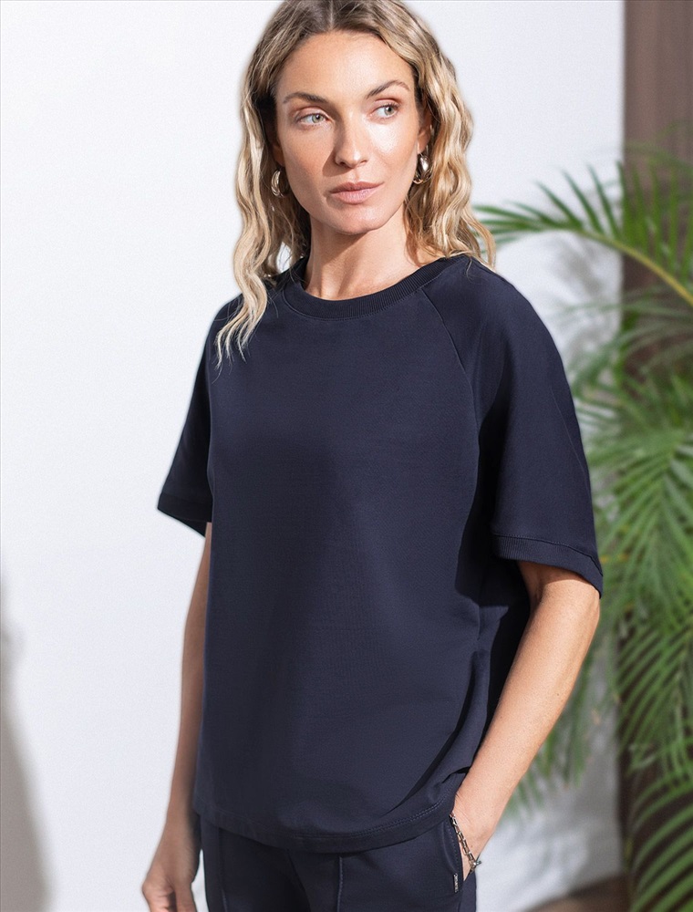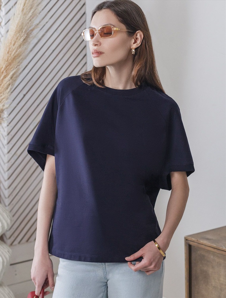 Плотность: 240 Г/м2 Футболка темно-синего цвета свободного кроя выполнена из премиального футера двухнитки с эластаном плотностью 240 Г/м2. . Натуральный материал отличается мягкостью и приятной текстурой, позволяя коже дышать и обеспечивая максимальное удобство при носке. Наличие эластана в составе изделия гарантирует абсолютный комфорт и формоустойчивость. Круглый ворот, рукава регланы средней длины и спущенная линия плеча придают футболке стильный и современный вид, делают образ расслабленным и непринужденным, такой вариант отлично сядет на большие размеры. Плотная футболка идеально подходит для повседневной носки и незаменима для тех, кто ценит удобство и свободу движений без компромиссов по стилю. Рекомендуем сочетать с артикулами: D44.164, D44.166, D49.138, D49.165 Комментарии к товару