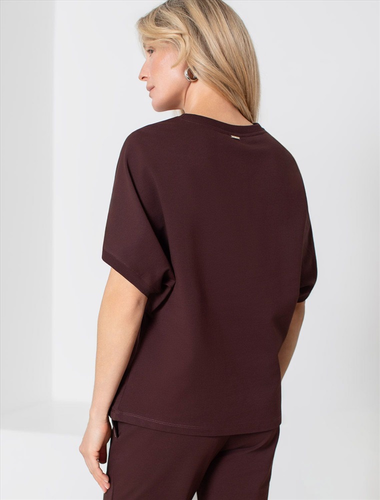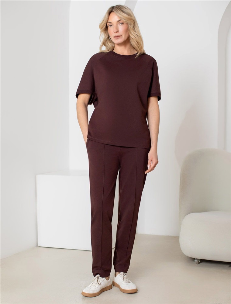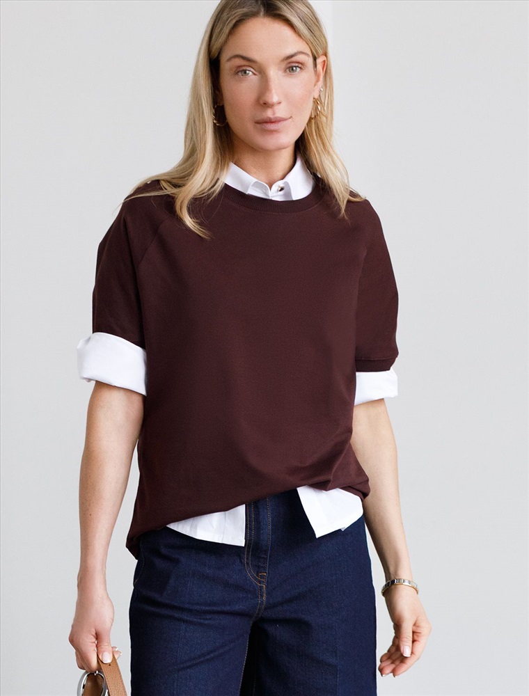 Плотность: 240 Г/м2 Футболка коричневого цвета свободного кроя выполнена из премиального футера двухнитки с эластаном плотностью 240 Г/м2. . Натуральный материал отличается мягкостью и приятной текстурой, позволяя коже дышать и обеспечивая максимальное удобство при носке. Наличие эластана в составе изделия гарантирует абсолютный комфорт и формоустойчивость. Круглый ворот, рукава регланы средней длины и спущенная линия плеча придают футболке стильный и современный вид, делают образ расслабленным и непринужденным, такой вариант отлично сядет на большие размеры. Плотная футболка идеально подходит для повседневной носки и незаменима для тех, кто ценит удобство и свободу движений без компромиссов по стилю. Рекомендуем сочетать с артикулами: D44.168, D44.165, D49.165, D49.171 Комментарии к товару