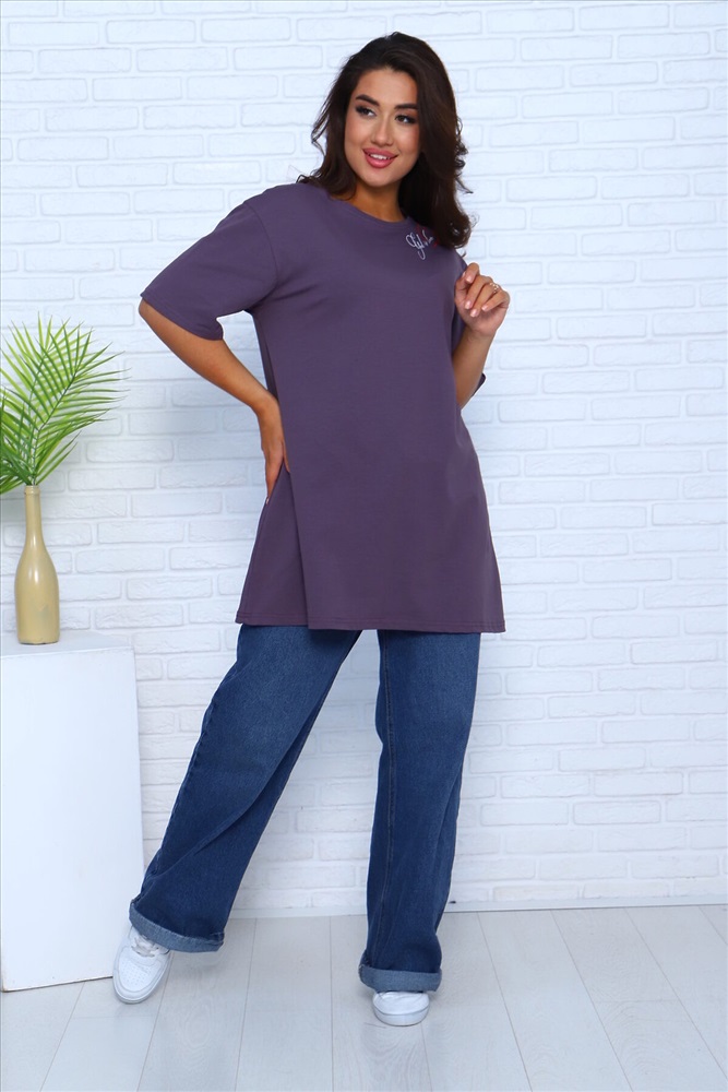 ID товара: 981601 Состав: 100% Хлопок Сезон: Весна/Лето Длина: Удлиненная Фасон: Свободный Рукав: короткие Вырез горловины: Округлый Основная ткань: Хлопок Стиль: повседневный Вид ткани: Кулирка Страна бренда: Россия Страна производства: Россия Футболка удлиненная, расширенная внизу, для высоких футболка, для миниатюрных девушек подойдет как короткое платье. Комментарии к товару