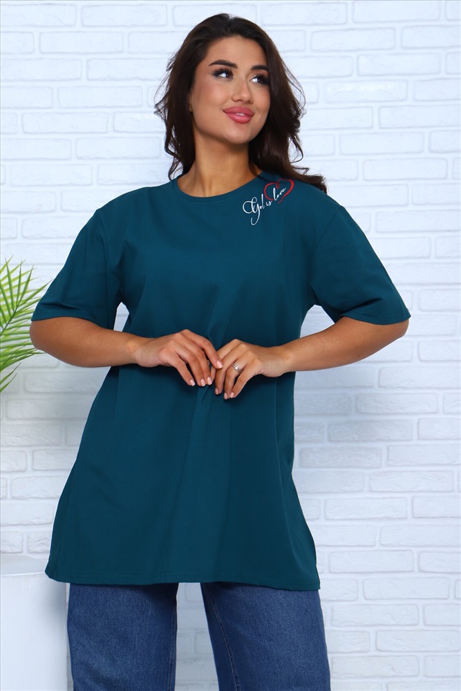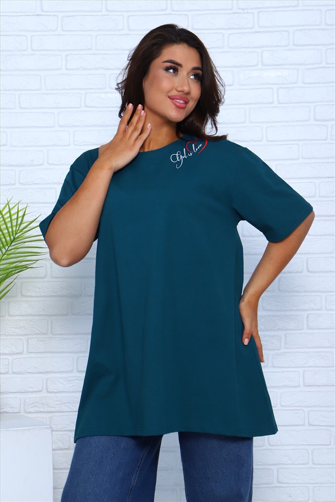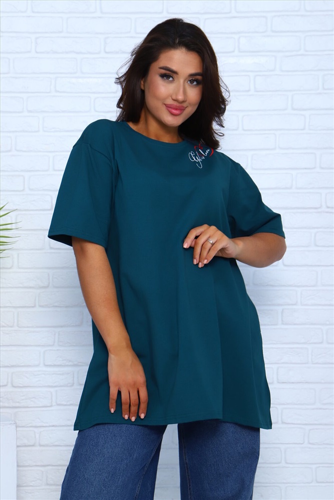 ID товара: 981602 Состав: 100% Хлопок Сезон: Весна/Лето Длина: Удлиненная Фасон: Свободный Рукав: короткие Вырез горловины: Округлый Основная ткань: Хлопок Стиль: повседневный Вид ткани: Кулирка Страна бренда: Россия Страна производства: Россия Футболка удлиненная, расширенная внизу, для высоких футболка, для миниатюрных девушек подойдет как короткое платье. Комментарии к товару