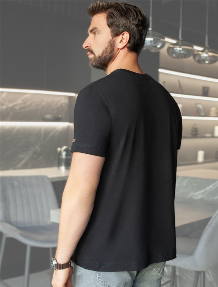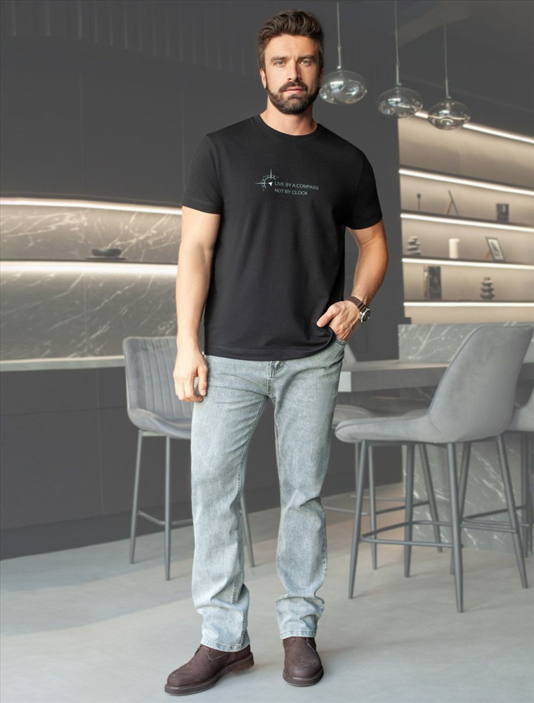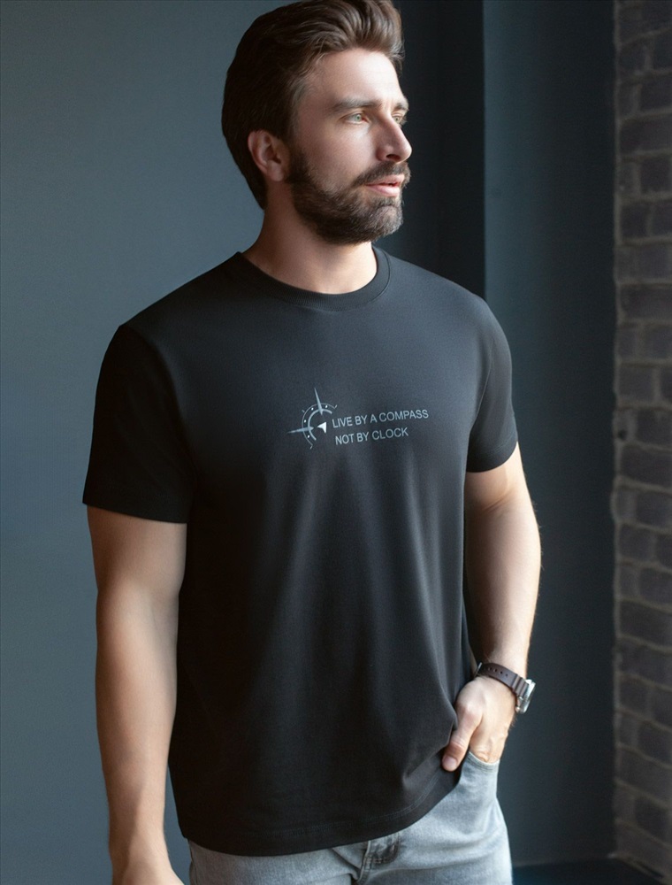 Плотность: 170 Г/м2 Футболка черного цвета из премиального хлопка с эластаном плотностью 170 Г/м2 станет универсальным решением для любого случая. Прямой крой обеспечивает комфортную посадку на любую фигуру, включая большие размеры, подходит как на низкий, так и на высокий рост. Благодаря сочетанию натурального хлопка и эластана, ткань отлично дышит и слегка тянется, сохраняя форму после стирок. Однотонная футболка выполнена в минималистичном стиле, дополнена принтом в виде изображения компаса и надписи. Перевод надписи: Live by a compas not by clock - Жить по компасу, а не по часам. На рукаве нашивка из эко-кожи с логотипом VILATTE. Подходит как классический вариант для работы в офис, так и для повседневной носки или занятий спортом. Мягкая ткань приятна к телу, не вызывает дискомфорта и идеально подходит для дома или летних прогулок. Простая и практичная футболка с коротким рукавом станет базовым элементом вашего гардероба. Она легко сочетается в спортивном или классическом стиле. Комментарии к товару