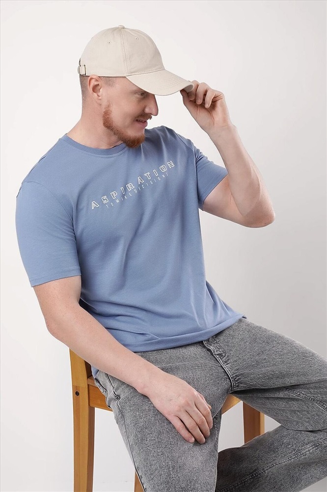 Фуфайка с коротким рукавом среднего объема, с оригинальным принтом, круглым вырезом горловины, которая оформлена обтачкой из рибаны. ТМ ЭЙС