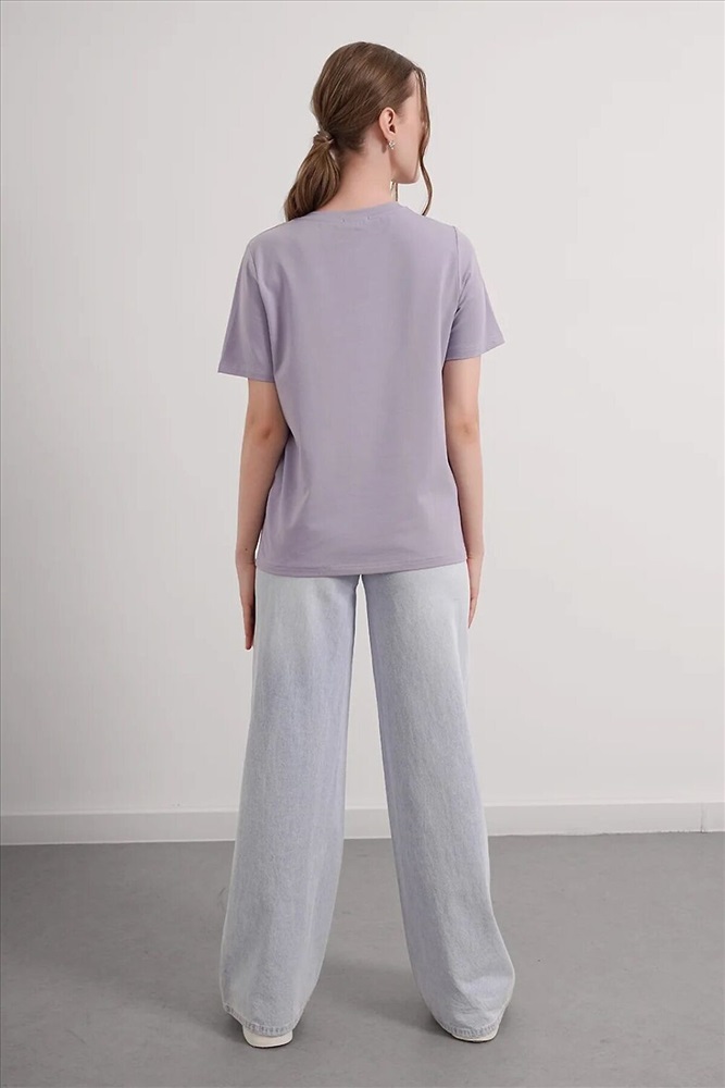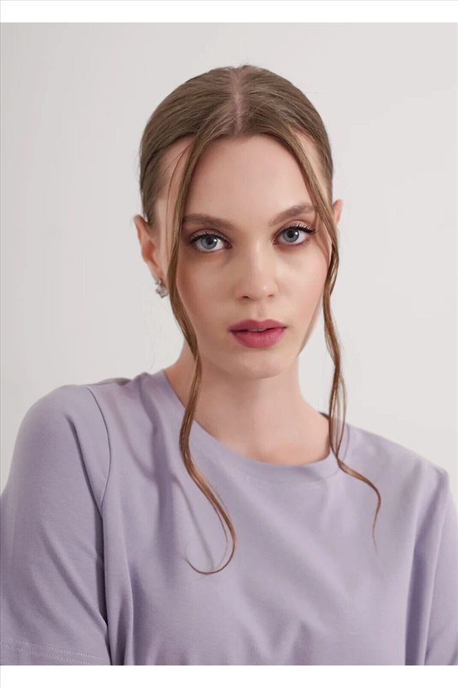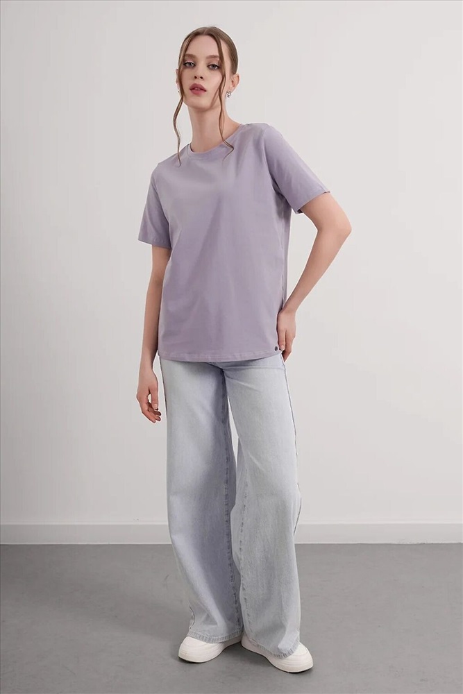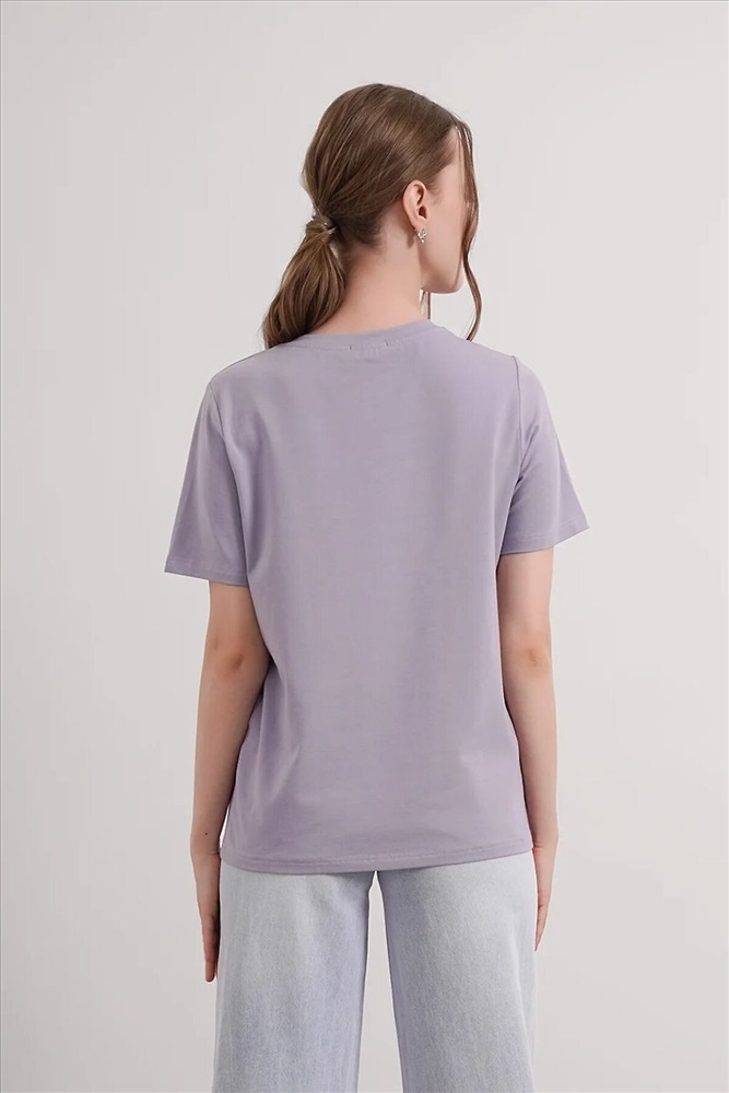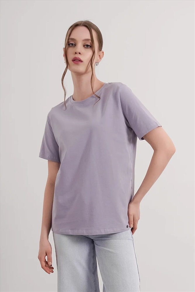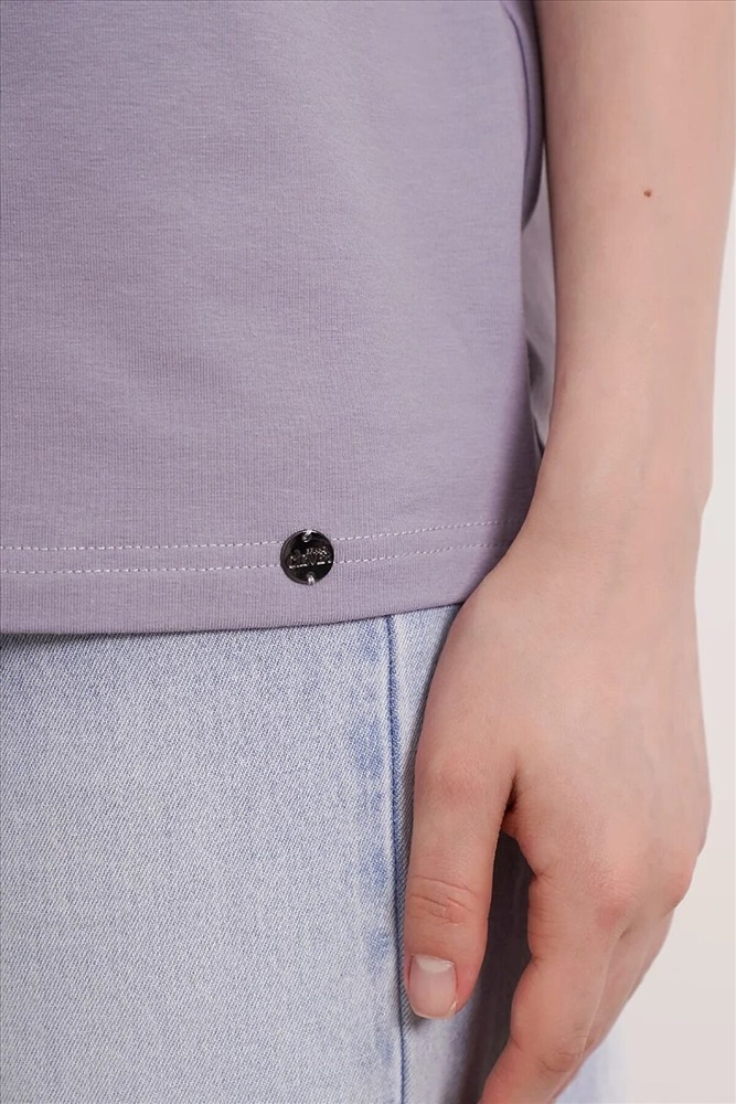Футболка женская из эластичного хлопкового полотна. Классический крой. Круглый вырез горловины. Короткий рукав. На левом рукаве фирменная силиконовая нашивка.