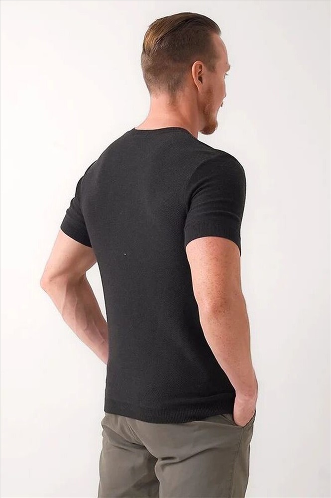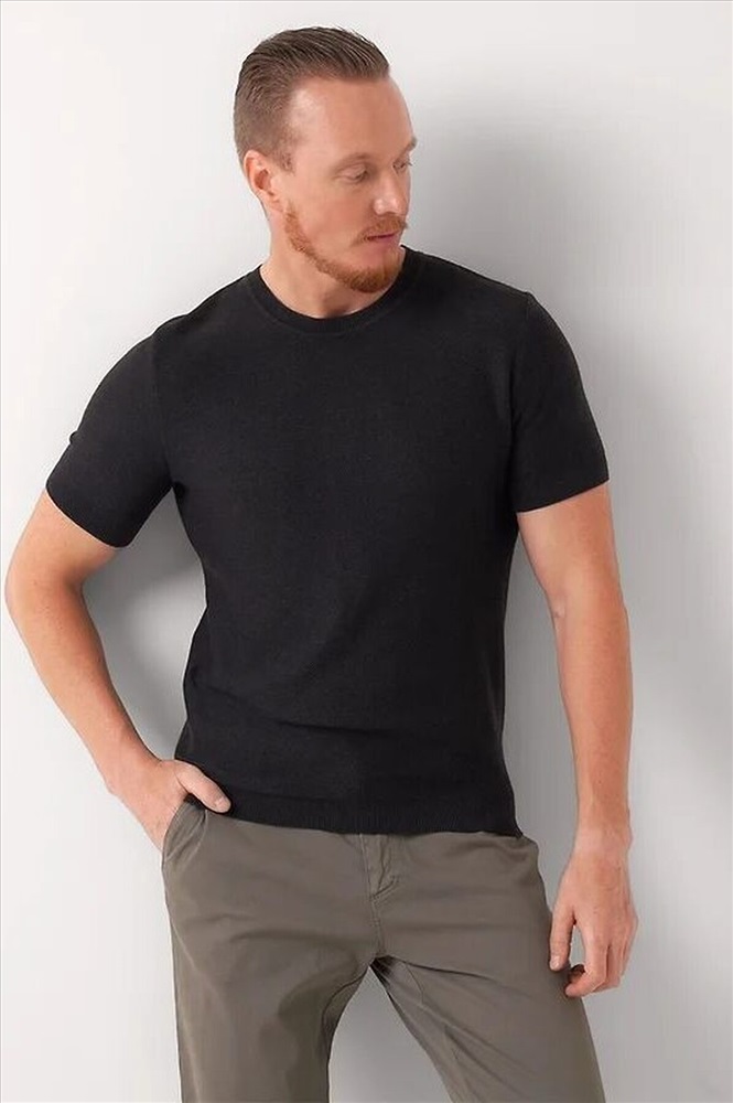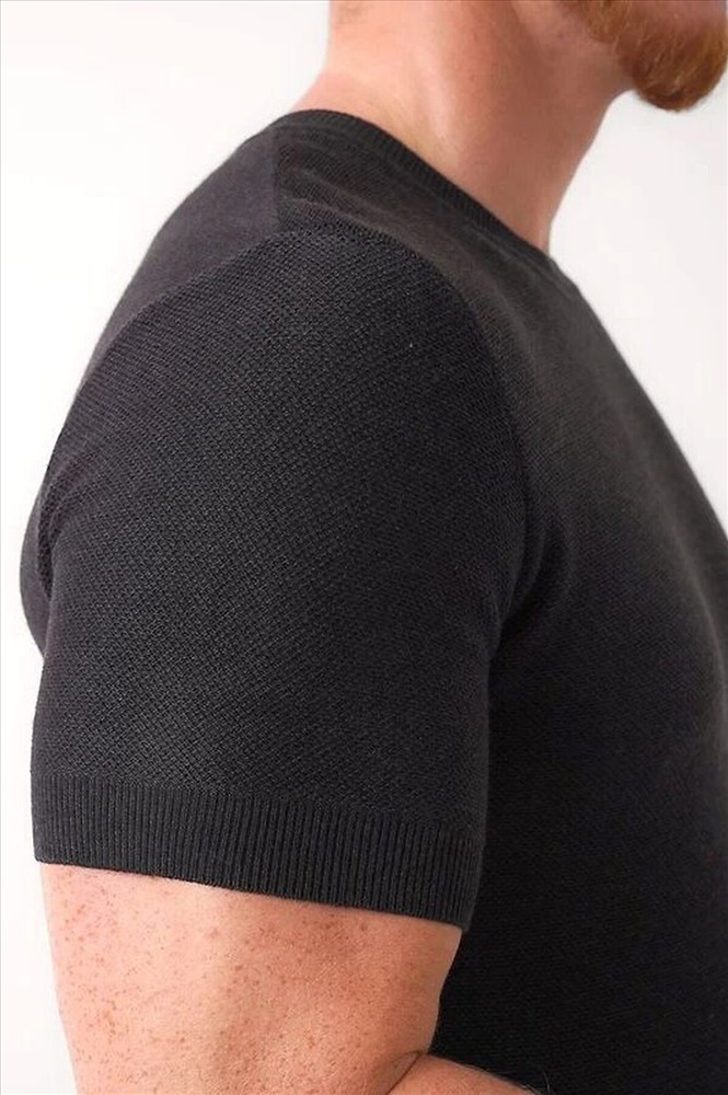 Вязаная футболка с коротким рукавом, выполненная из смесовой пряжи, обладает фактурным переплетением, которое придает ей стильный и современный вид. Эта модель прекрасно сочетается с джинсами, брюками позволяя создавать разнообразные образы.