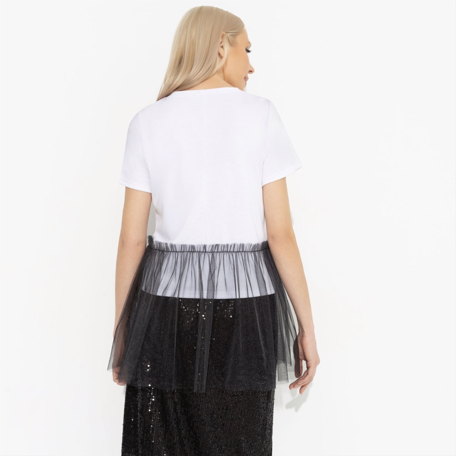 Футболка дизайнерская «Играть по-крупному» — это выбор для тех, кто хочет подчеркнуть свою индивидуальность и стиль. Созданная из ткани «Милано» и дополненная прозрачной сеткой, эта футболка женская оверсайз станет настоящим хитом вашего гардероба. Классический крой и дерзкий принт делают её незаменимой для создания ярких образов. Представьте себе, как вы идёте по улице в этой футболке, привлекая восхищённые взгляды окружающих. Если вы хотите купить футболки женские оптом, обратите внимание на эту модель — она идеально подойдёт как для повседневной носки, так и для стильных вечеринок. Эта футболка белая женская — настоящая находка для любителей комфорта и моды. Комментарий стилиста не оставляет сомнений: микс, поражающий в самое сердце. Вы будете выглядеть потрясающе, будь то на прогулке по городу или в офисе. Шикарная прошитая баска из прозрачной сетки придаёт изделию особый шарм и лёгкость. Длина баски ниже линии бедра позволяет создавать женственные и изысканные образы. Рассмотрите возможность приобретения футболок оптом, чтобы ваши клиенты смогли ощутить всю прелесть этой уникальной модели. Если вы ищете футболку женскую больших размеров, то «Играть по-крупному» станет идеальным выбором. Она подчёркивает все достоинства женской фигуры и дарит уверенность в себе. Благодаря использованию качественного хлопка, эта футболка женская остаётся мягкой и приятной на ощупь даже после множества стирок. Эта футболка с принтом отлично подойдёт для создания как повседневных, так и более праздничных образов. Возможность приобрести такие футболки женские оптом позволит вам предложить своим клиентам не только стиль, но и комфорт.