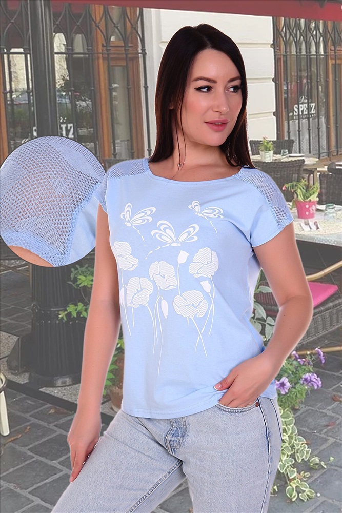 ID товара: 279073 Состав: Основа- Хлопок 100%; Сетка- Полиэстер 82%, Вискоза 18% Сезон: Весна/Лето Длина: Средняя Фасон: Прямой Рукав: Короткий Вид застежки: Нет Вырез горловины: Круглый Рисунок: цветочный Тип карманов: Без карманов Декоративные элементы: Сетка Основная ткань: Хлопок | Ажурный трикотаж, кулирка, Ажурный трикотаж имеет привлекательный внешний вид, отличается эластичностью, высокой воздухопроницаемостью, хорошие показатели прочности. Нетребователен в уходе, ему подходит деликатная машинная стирка, желательно сушить в расправленном виде, не требуется глажка. Стиль: Повседневный Страна бренда: Россия Страна производства: Россия Футболка женская с принтом из комбинированного трикотажа - кулирки и ажурного трикотажа. Футболка слегка приталенная, горловина в виде лодочки, спущенная пройма, на плечах кокетка - "погоны" из ажурного трикотажа. Низ спинки удлинён и слегка закруглён. Футболка из натурального 100% хлопка - комфортная, приятная к телу, подойдёт как для повседневного гардероба, так и для активного отдыха. Комментарии к товару