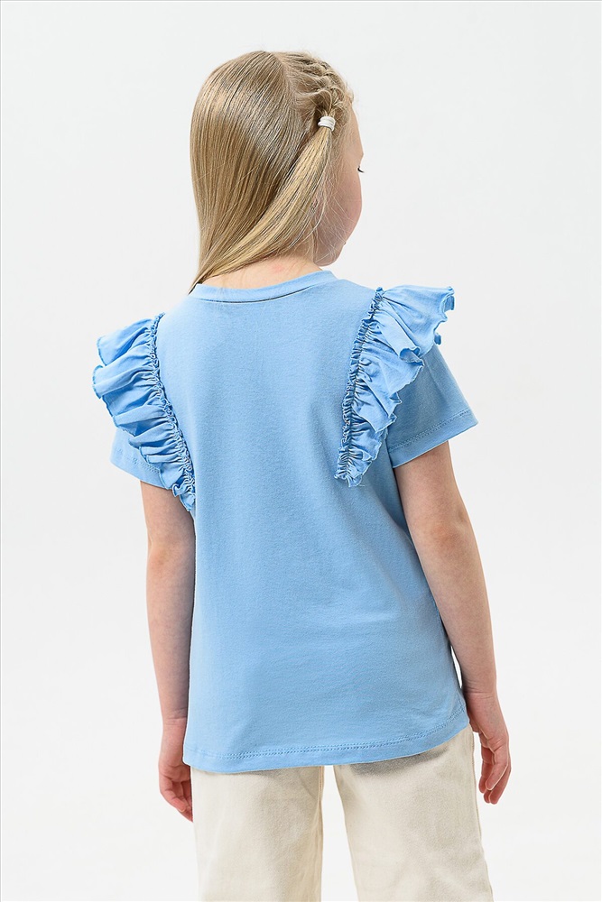 ID товара: 982543 Состав: 92% Хлопок; 8% Лайкра Сезон: Весна/Лето Длина: Средняя Фасон: Прямой Рукав: короткие Вырез горловины: Округлый Декоративные элементы: Рюши Основная ткань: Хлопок Стиль: повседневный Вид ткани: Кулирка с лайкрой Страна бренда: Россия Страна производства: Россия Футболка изготовлена из полотна хлопок, приятный к телу, гипоаллергенна. Свободный крой. Короткий рукав. На ребенка среднего телосложения. Удобную хлопковую футболку можно использовать для прогулки, игр на свежем воздухе, в садик, в школу или для танцев и гимнастики. Классический дизайн и универсальный цвет позволяют сочетать детскую одежду с любыми вещами: джинсами, спортивным костюмом, брюками, шортами, под пиджак и любой обувью. Такая практичная демисезонная вещь для малышей и подростков не сковывает движений, отлично вписывается в молодежный стиль, актуальна на любой сезон. Комментарии к товару