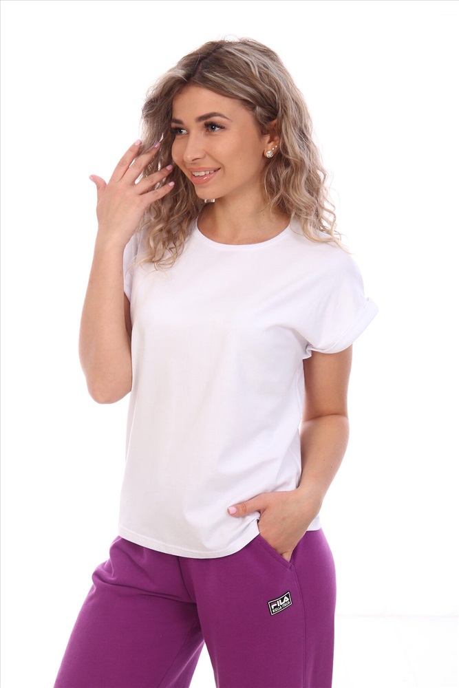 ID товара: 1003282 Состав: Хлопок 95% Лайкра 5% Сезон: Весна/Лето Фасон: Свободный крой Рукав: Короткие Вырез горловины: Круглый Вид ткани: Кулирка с лайкрой Страна бренда: Россия Страна производства: Россия Футболка женская из хлопковой ткани с лайкрой. Ткань держит форму, не вытягивается, приятная на ощупь. Стильная футболка классического фасона со спущенным рукавом. Посадка свободная. Эта базовая модель подойдет абсолютно всем и станет необходимой вещью в вашем гардеробе. Комментарии к товару