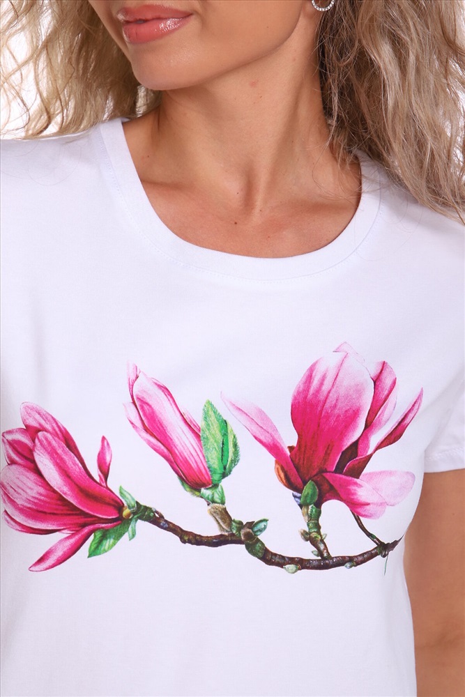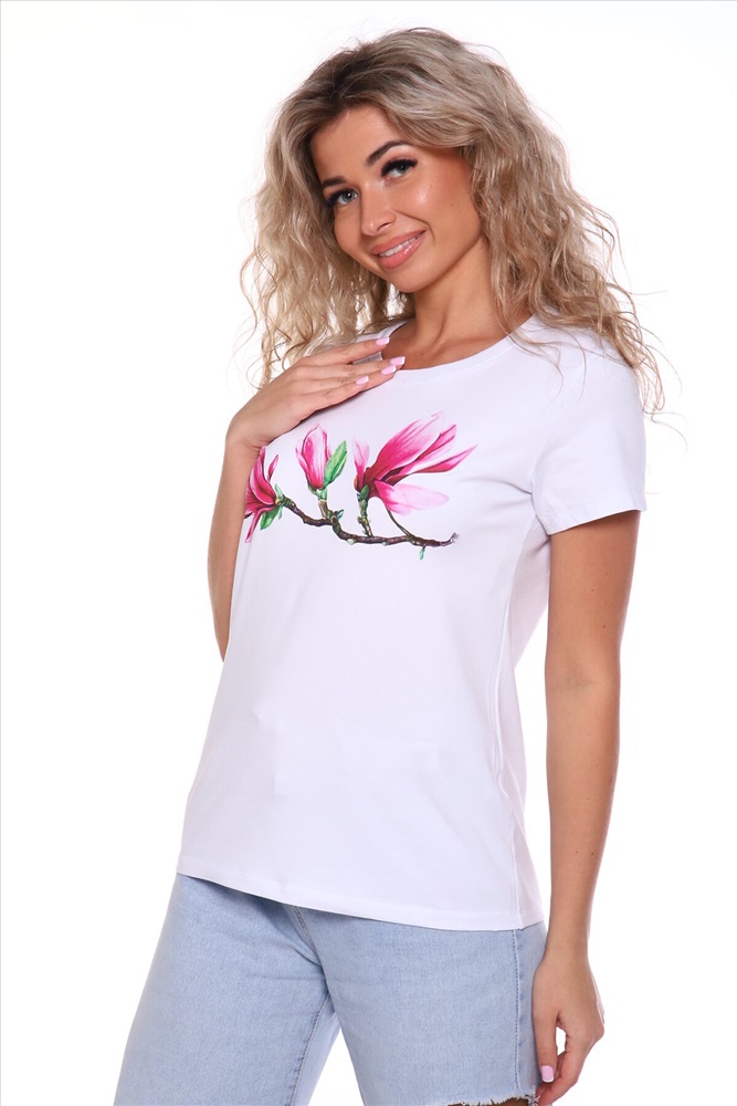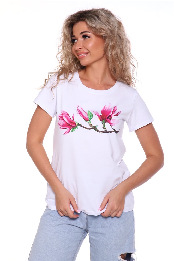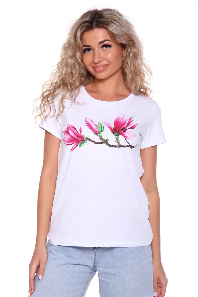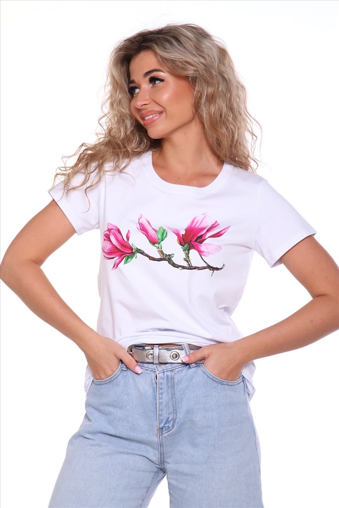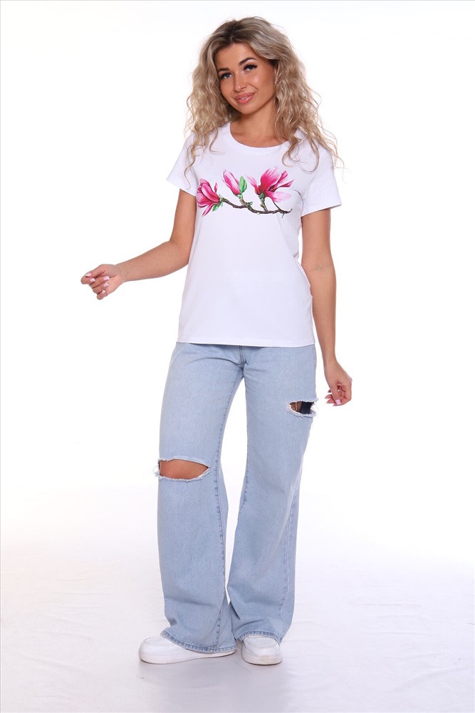 ID товара: 907199 Состав: 95% Хлопок; 5% Лайкра Сезон: Весна/Лето Длина: Средняя Фасон: Прямой Рукав: короткие Вырез горловины: Округлый Рисунок: цветочный Основная ткань: Хлопок Стиль: Повседневный Вид ткани: Кулирка с лайкрой пенье Страна бренда: Россия Страна производства: Россия Футболка женская с оригинальным принтом, из хлопковой ткани с лайкрой. Ткань держит форму, не вытягивается, приятная на ощупь. Стильная футболка классического фасона. Посадка свободная. Такая модель подойдет абсолютно всем и станет необходимой вещью в вашем гардеробе. Комментарии к товару