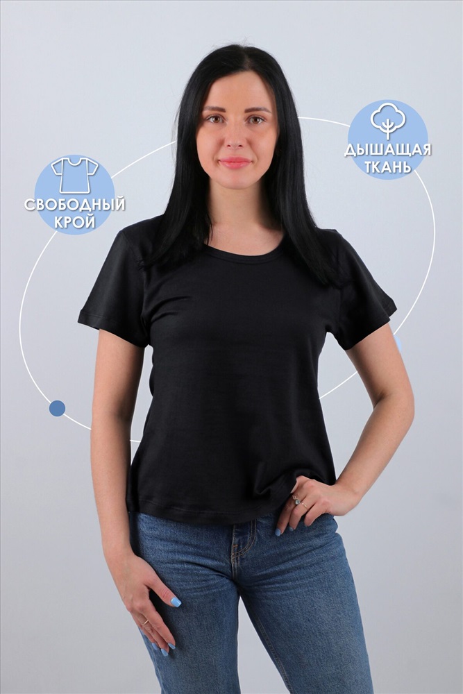 ID товара: 905924 Состав: 100% Хлопок Сезон: Весна/Лето Длина: Средняя Фасон: Свободный крой Рукав: короткие Вырез горловины: Округлый Основная ткань: Хлопок Стиль: Базовый Вид ткани: Кулирка Страна бренда: Россия Страна производства: Россия Женская базовая однотонная футболка из 100% натурального хлопка. Универсальная модель свободного покроя с короткими рукавами и округлым вырезом горловины прекрасно смотрится с джинсами, брюками и юбкой, ее можно надеть в офис под кардиган или пиджак. Комментарии к товару