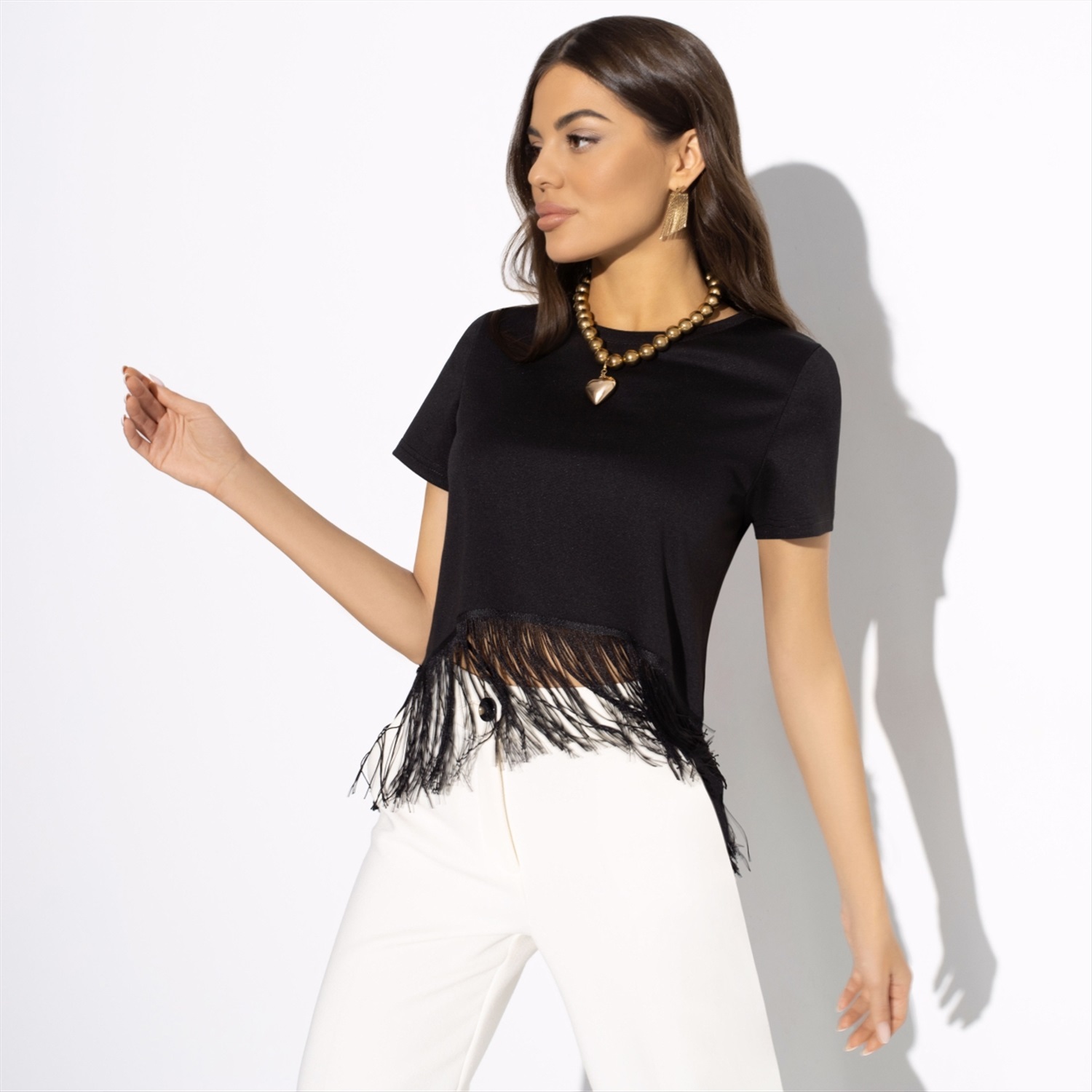 Состав: Трикотаж «милано» (65% п/э, 30% вискоза, 5% стрейч) Плотность ткани: Средняя Тип ткани: Трикотаж Вид застежки: Нет Карманы: Нет Основной цвет ткани: Черный Отрезная талия: Нет Подклад: Нет Резинка по талии: Нет Рисунок/раппорт: Нет, все изделия идентичны Сезон: Круглогодичный Футболка «Хочу такую» – это не просто одежда, а настоящий стильный акцент для любого гардероба. Изготовленная из трикотажа «милано» (65% п/э, 30% вискоза, 5% стрейч), эта футболка идеально сочетает комфорт, качество и долговечность. Натуральные и синтетические волокна в составе ткани обеспечивают отличную посадку и приятные ощущения на коже, что делает ее идеальной для повседневной носки и особых случаев. Бахрома на этой футболке – это модный элемент, который придает ей уникальность и оригинальность. Она отлично подходит для вечеринок под открытым небом, где вы обязательно окажетесь в центре внимания. Бахрома добавляет динамики и игривости вашему образу, делая его более выразительным и запоминающимся. Это идеальный выбор для тех, кто хочет выглядеть стильно и привлекательно. Футболка «Хочу такую» – это ваш звездный час. Надев ее, вы почувствуете себя настоящей звездой любой вечеринки. Благодаря современному дизайну и высокому качеству исполнения, эта футболка станет вашим любимым элементом гардероба. Она подходит для оптовых закупок, так как пользуется высокой популярностью и спросом среди клиентов. Приобретайте футболку «Хочу такую» оптом и будьте уверены в ее востребованности и успешных продажах. Комментарии к товару