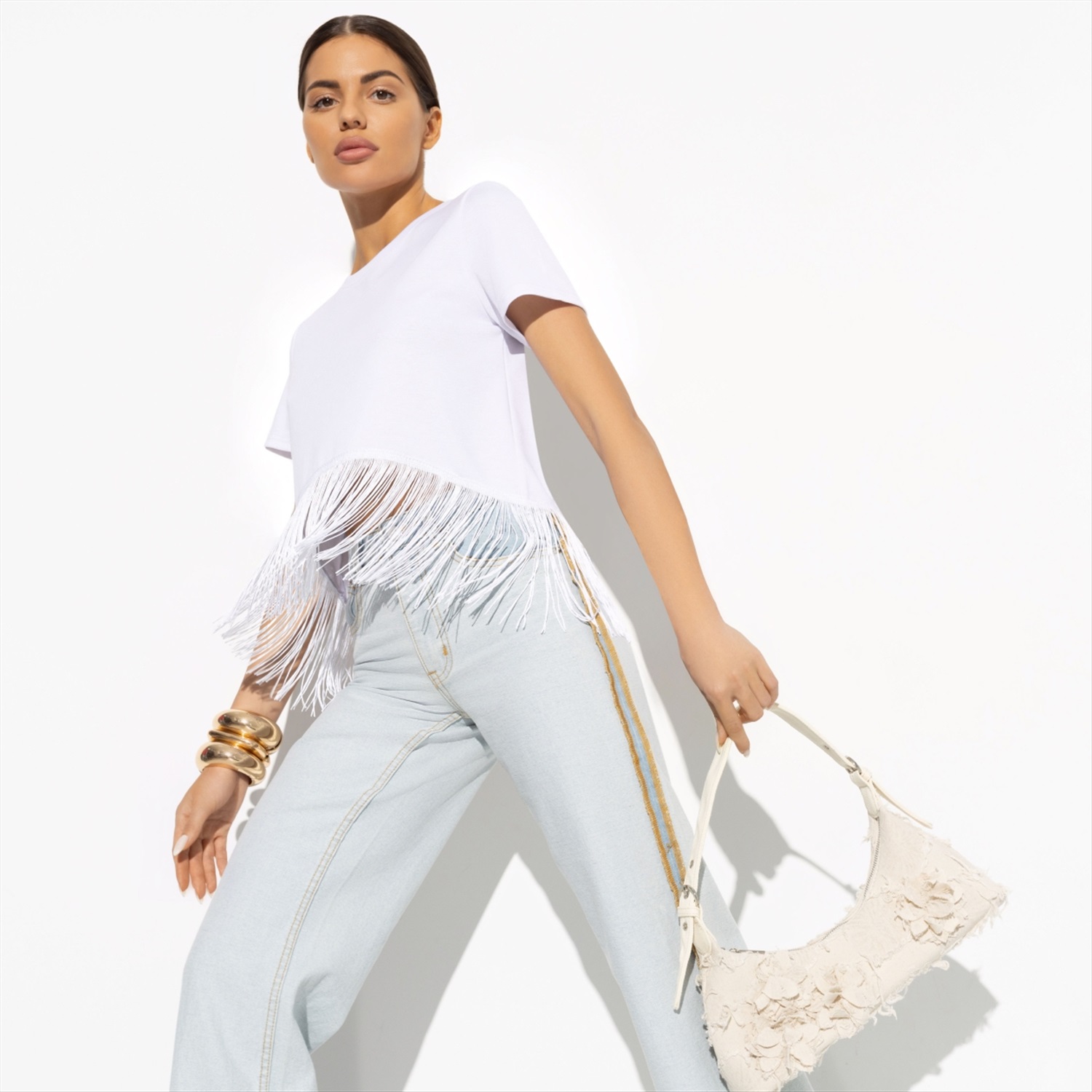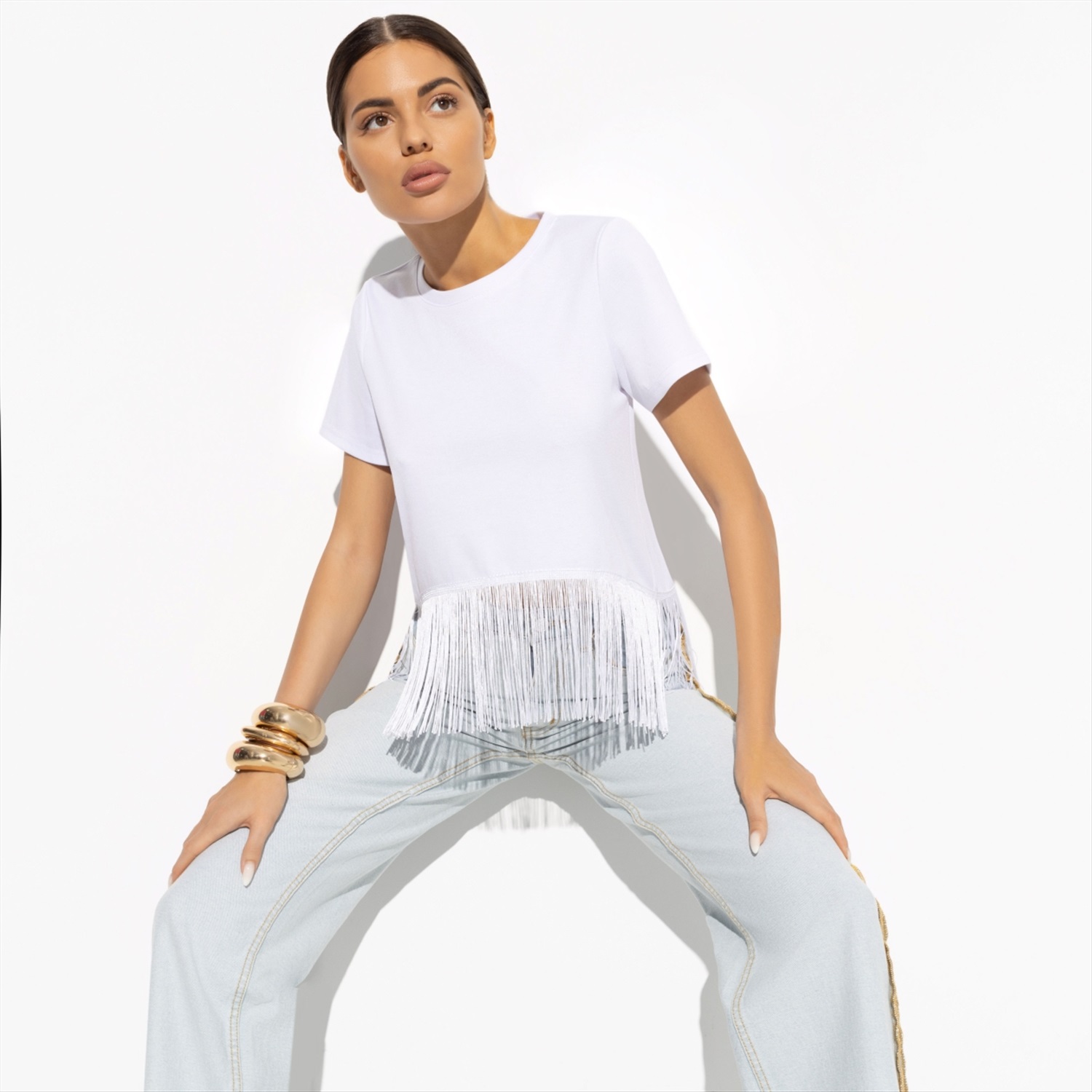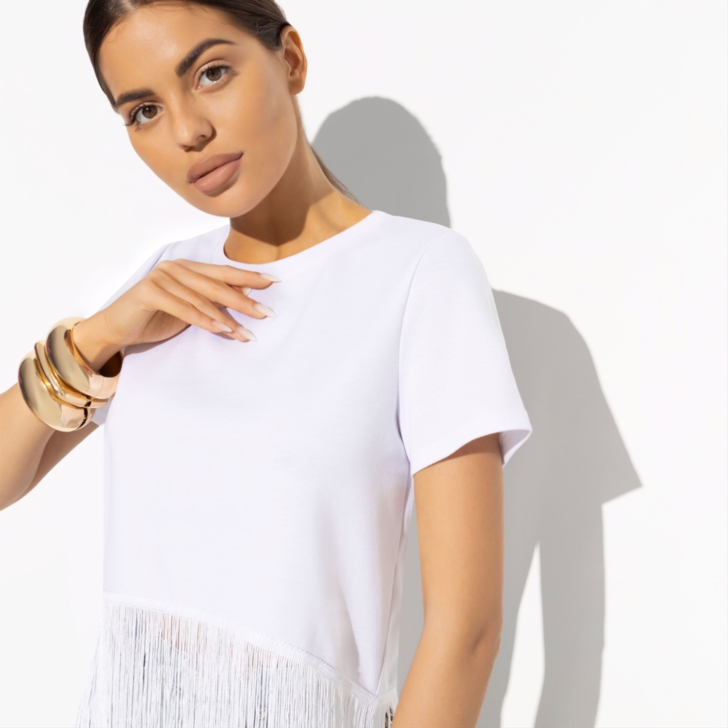 Состав: Трикотаж «милано» (65% п/э, 30% вискоза, 5% стрейч) Плотность ткани: Средняя Тип ткани: Трикотаж Вид застежки: Нет Карманы: Нет Основной цвет ткани: Белый Отрезная талия: Нет Подклад: Нет Резинка по талии: Нет Рисунок/раппорт: Нет, все изделия идентичны Сезон: Круглогодичный Футболка «Хочу такую (white)» — идеальное решение для вашего бизнеса. Продавайте оптом стильные футболки, которые понравятся вашим клиентам благодаря их универсальности и современному дизайну. Эта футболка станет любимой вещью в гардеробе ваших клиентов. Утро начинается с йоги в парке, затем следует ланч с подругами, а вечер завершается вечеринкой под открытым небом — и всё это в одной и той же футболке. Нет необходимости менять образ в течение дня, если у вас есть такая универсальная вещь. Трендовая бахрома по подолу добавляет уникальности и стиля, что делает её отличным выбором для тех, кто следит за модой. Футболка выполнена из трикотажа «милано», включающего 65% полиэстера, 30% вискозы и 5% стрейча. Такой состав обеспечивает комфорт и долговечность изделия, что особенно важно при оптовых закупках. Вискоза в составе ткани придаёт футболке мягкость и приятные тактильные ощущения, а стрейч позволяет ей сохранять форму и выглядеть безупречно даже после многочисленных стирок. Покупая оптом футболку «Хочу такую (white)», вы предлагаете своим клиентам высококачественный и стильный продукт, который станет неотъемлемой частью их повседневной жизни. Бахрома в тон ткани по всей окружности подола добавляет динамичности и элегантности, делая эту футболку идеальным выбором для любого случая. Инвестируйте в этот модный и востребованный товар, чтобы удовлетворить потребности своих клиентов и повысить продажи. Футболка «Хочу такую (white)» — это сочетание стиля, качества и универсальности, которое оценят все. Комментарии к товару