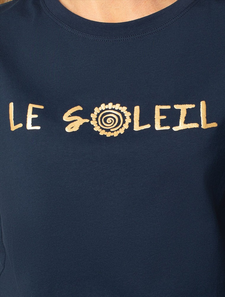 Плотность: 140 Г/м2 Параметры модели на первом фото: Рост 170, бюст 89, талия 63, бедра 92 Перевод принта: "le soleil (фр.) - солнце". Футболка прямого кроя выполнена из 100% хлопка. Базовая модель дополнена лаконичным авторским принтом. Легко впишется в повседневный гардероб. Изделие хорошо держит форму и обеспечивает комфортный микроклимат в течение дня. Комментарии к товару