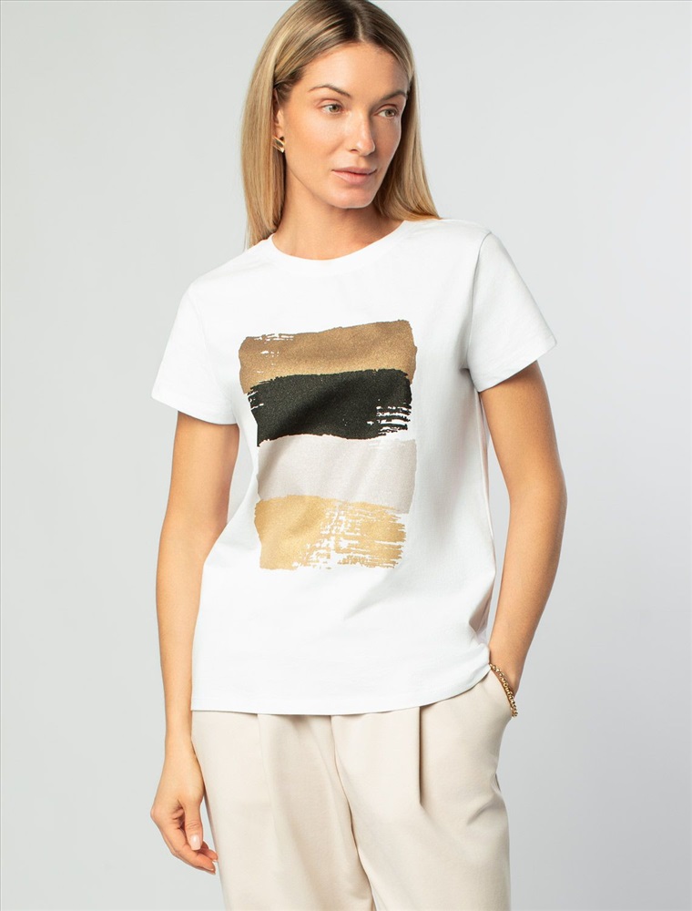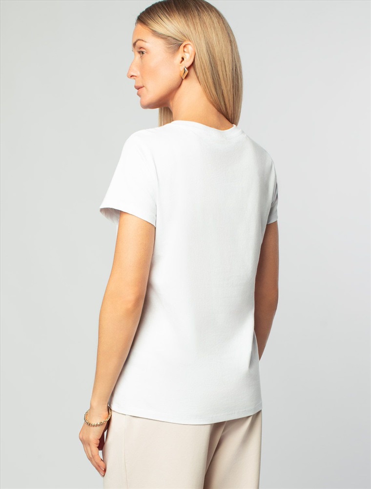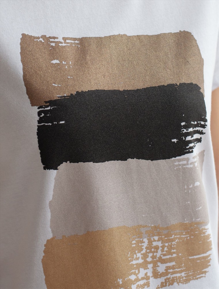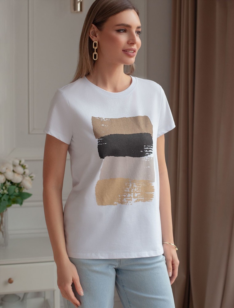 Футболка прямого кроя выполнена из 100% хлопка. Базовая модель дополнена лаконичным авторским принтом. Легко впишется в повседневный гардероб. Изделие хорошо держит форму и обеспечивает комфортный микроклимат в течение дня.