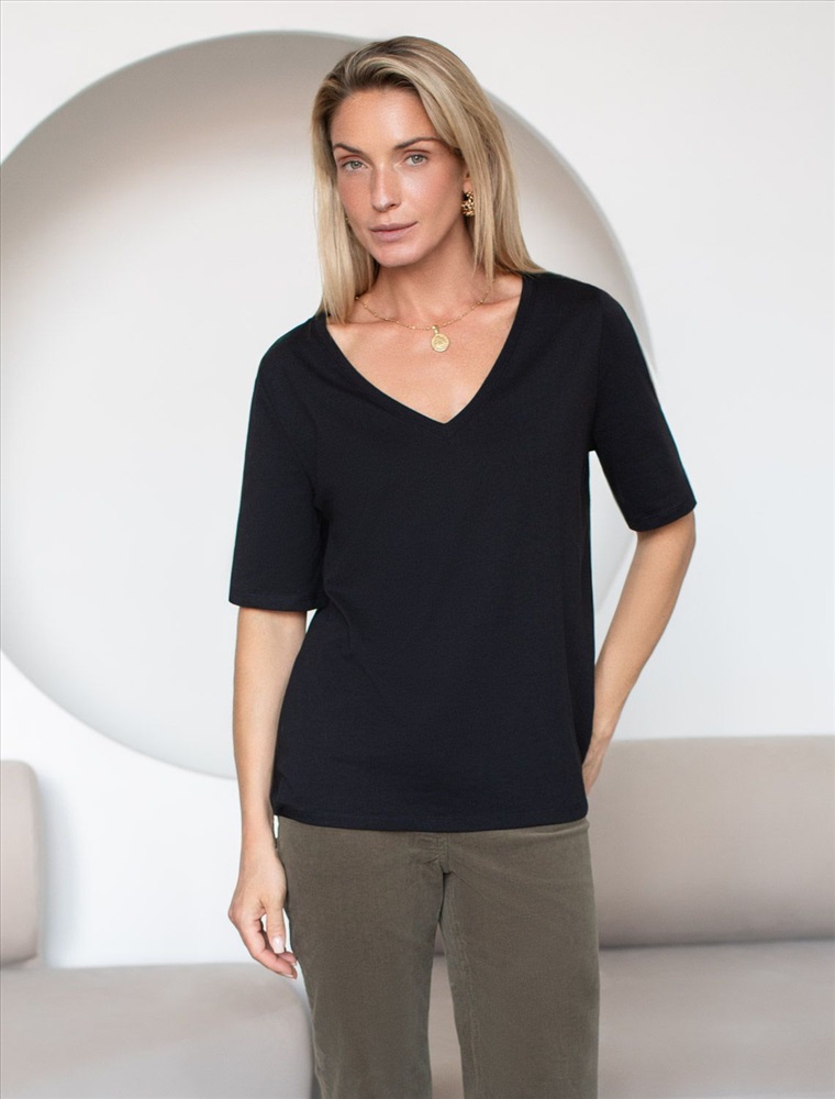 Плотность: 140 Г/м2 Базовая модель свободного кроя c V-вырезом легко впишется в повседненвый гардероб. Изделие хорошо держит форму и обеспечивает комфортный микроклимат в течение дня. Комментарии к товару