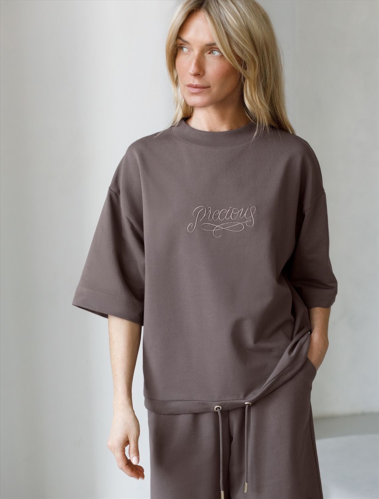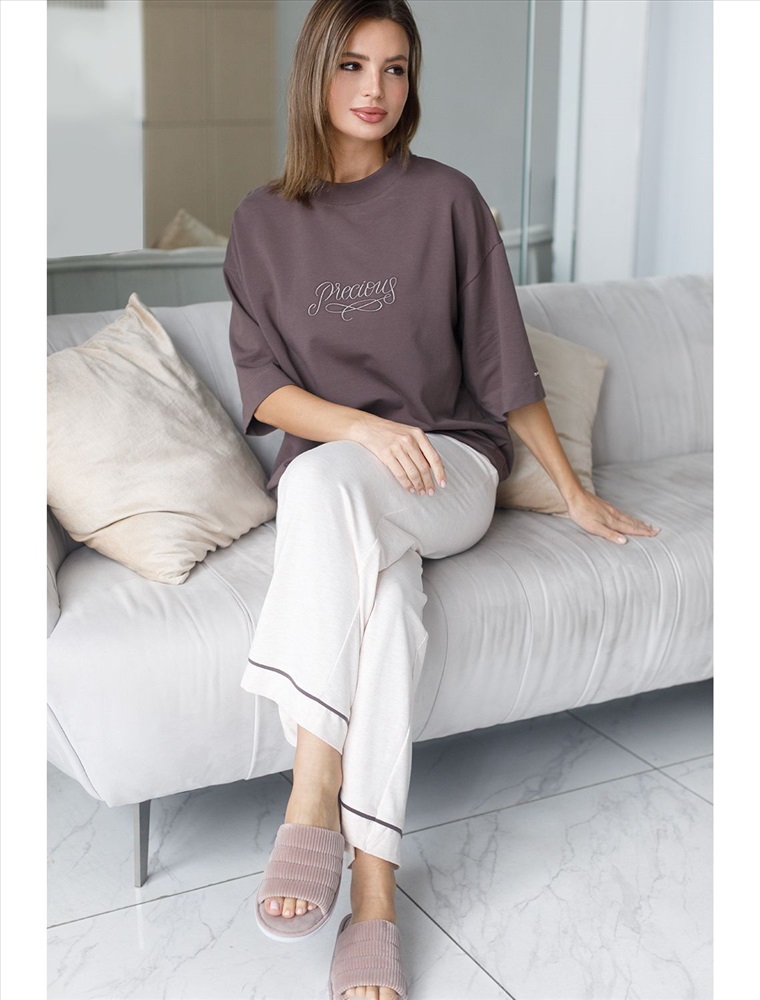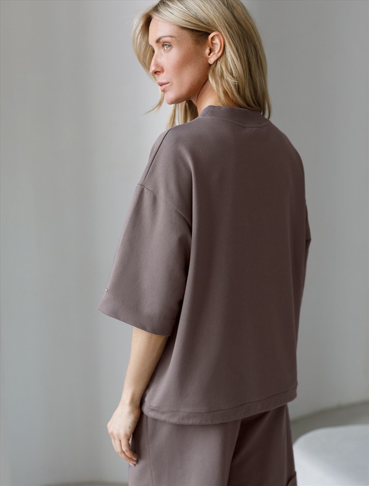Плотность: 240 Г/м2 Параметры модели на первом фото: Рост 172, бюст 88, талия 64, бедра 88 Футболка выполнена из эластичного футера двухнитки. Авторский принт нанесен фактурными красками с устойчивым покрытием. Модель свободного кроя, по низу изделия дополнена хлопковым шнуром с металлической фурнитурой. Изделие сочетается в костюме с шортами D48.010, брюками D44.135 и D44.137, D44.152, D44.136 Комментарии к товару