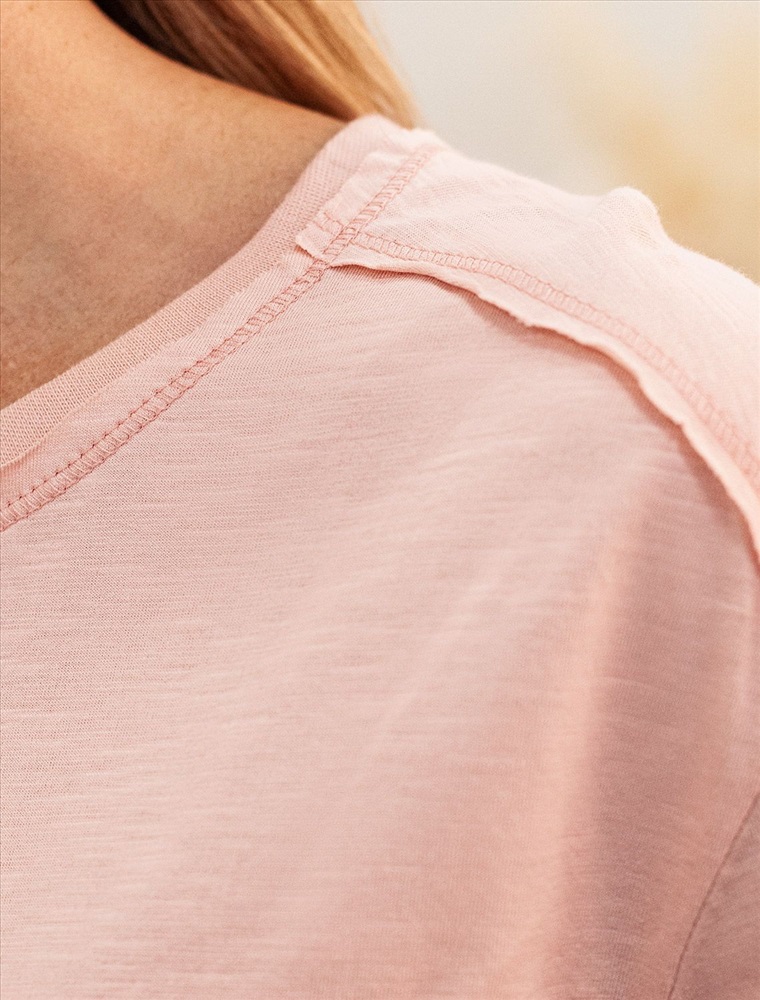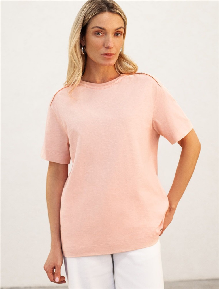 Плотность: 140 Г/м2 Футболка выполнена из фактурного полотна из 100% хлопка. Модель дополнена открытым срезом на плечах. Как базовая модель отлично впишется в любой гардероб. Ткань имеет характерный рисунок черточки за счет сочетания разных волокон хлопка 140-150 г. Хорошо держит форму и поддерживает комфортный микроклимат в течении дня. Комментарии к товару