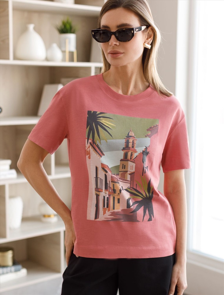 Плотность: 140 Г/м2 Параметры модели на первом фото: Рост 170, бюст 89, талия 63, бедра 92 Футболка выполнена из фактурного полотна из 100% хлопка. Модель с авторским принтом легко впишется в любой весенне-летний гардероб. Ткань имеет характерный рисунок черточки за счет сочетания разных волокон хлопка 140-150 г. Хорошо держит форму и поддерживает комфортный микроклимат в течении дня. Комментарии к товару