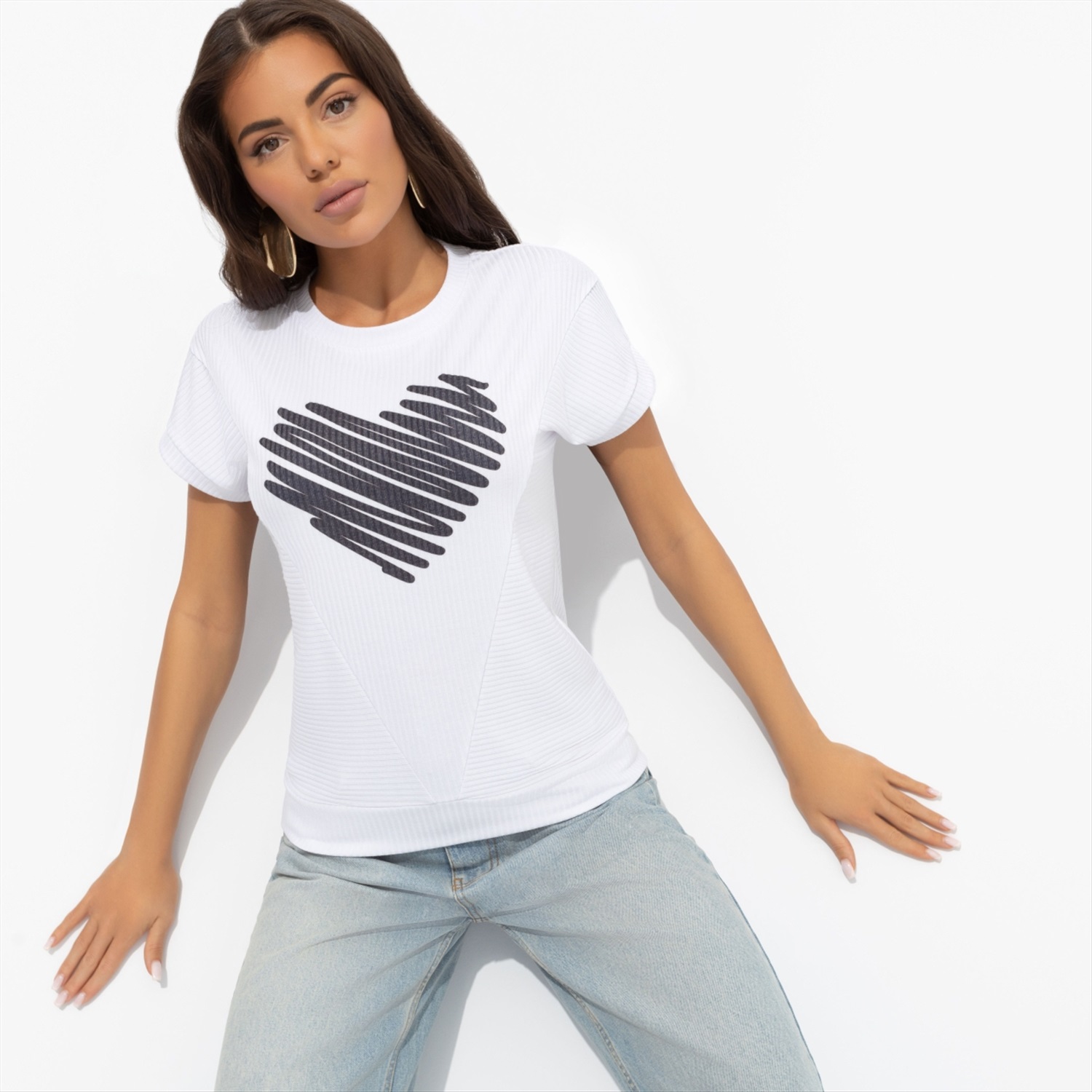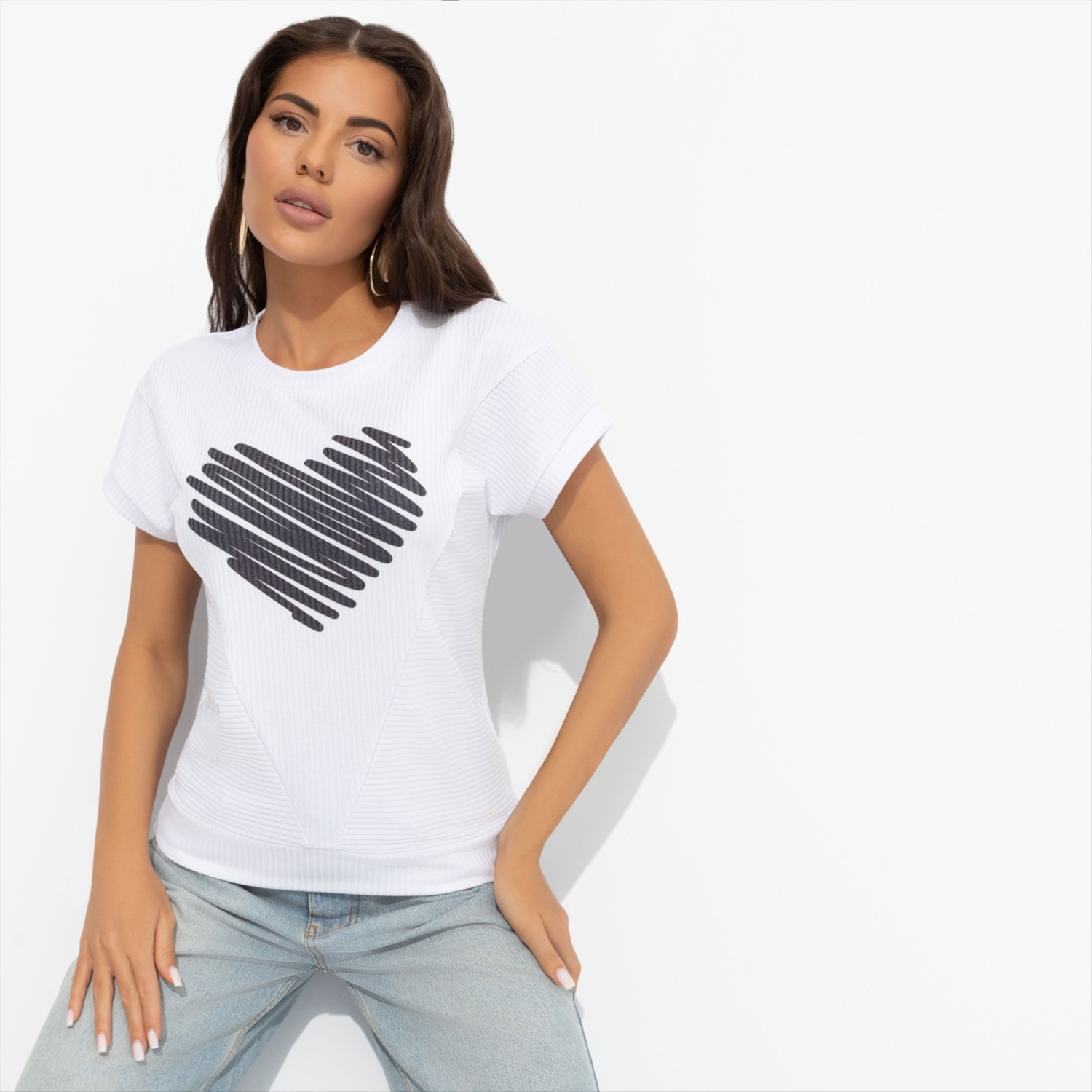 Состав: Трикотаж «лапша» (65% п/э, 30% вискоза, 5% спандекс) Плотность ткани: Средняя Тип ткани: Трикотаж Вид застежки: Нет Дополнительный цвет ткани: Черный Карманы: Нет Основной цвет ткани: Белый Отрезная талия: Нет Подклад: Нет Резинка по талии: Нет Рисунок/раппорт: Каждое изделие уникально из-за расположения рисунка на ткани Сезон: Круглогодичный Силуэт: Прямой Стиль: Повседневный Параметры модели на фото:
