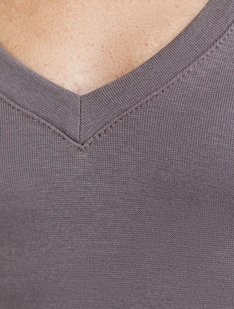 Плотность: 210 Г/м2 Облегающая футболка с V-образным вырезом глубокого кофейного оттенка создаст утонченный образ. Идеальная базовая модель для вашего гардероба! Глубокий V-образный вырез подчеркивает линию шеи и зрительно удлиняет силуэт. Футболка выполнена из хлопка с добавлением эластана, которая мягко облегает контуры тела, подчеркивая достоинства фигуры. Универсальный вариант для создания стильных повседневных образов. Комментарии к товару