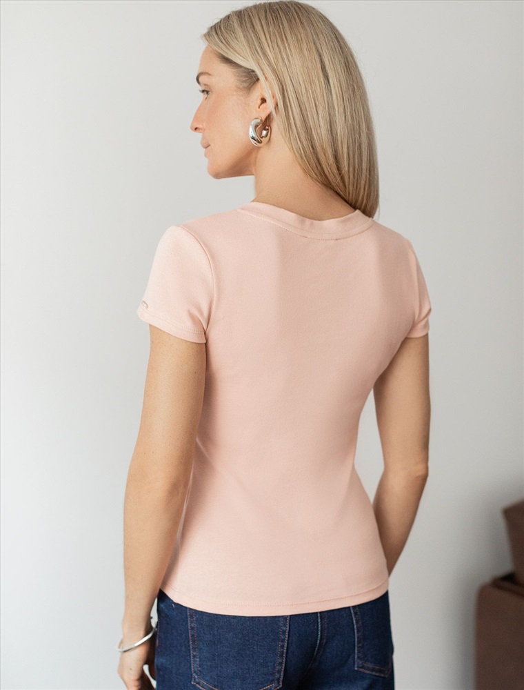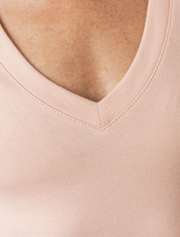 Плотность: 210 Г/м2 Облегающая футболка с V-образным вырезом в пудровом цвете создаст утонченный образ. Идеальная базовая модель для вашего гардероба! Глубокий V-образный вырез подчеркивает линию шеи и зрительно удлиняет силуэт. Футболка выполнена из хлопка с добавлением эластана, которая мягко облегает контуры тела, подчеркивая достоинства фигуры. Универсальный вариант для создания стильных повседневных образов. Комментарии к товару