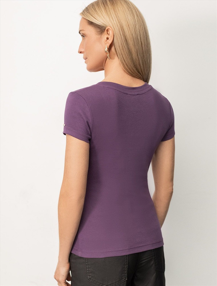 Облегающая футболка с V-образным вырезом цвета "бургунди" создаст утонченный образ. Идеальная базовая модель для вашего гардероба! Глубокий V-образный вырез подчеркивает линию шеи и зрительно удлиняет силуэт. Футболка выполнена из хлопка с добавлением эластана, которая мягко облегает контуры тела, подчеркивая достоинства фигуры. Универсальный вариант для создания стильных повседневных образов.