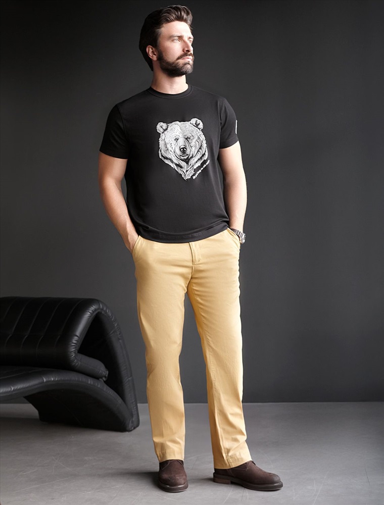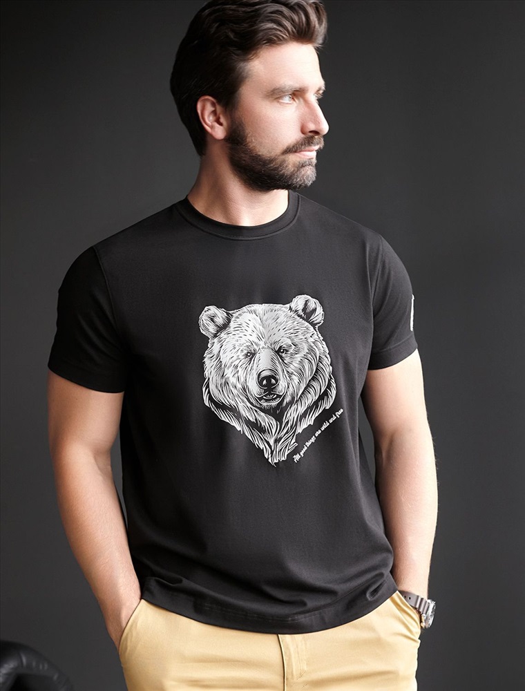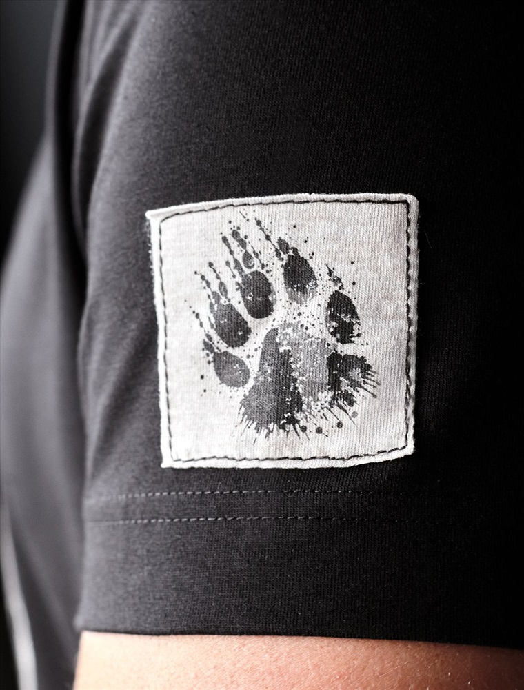 Футболка выполнена из премиального хлопка с эластаном. Авторский принт нанесен фактурными красками с устойчивым покрытием. Изделие комфортно сидит по фигуре, не сковывая движений. За счет среднего объема, хорошо подойдет как первый слой под пиджак, кардиган или бомбер. На рукаве нашивка из эко-кожи с логотипом бренда.