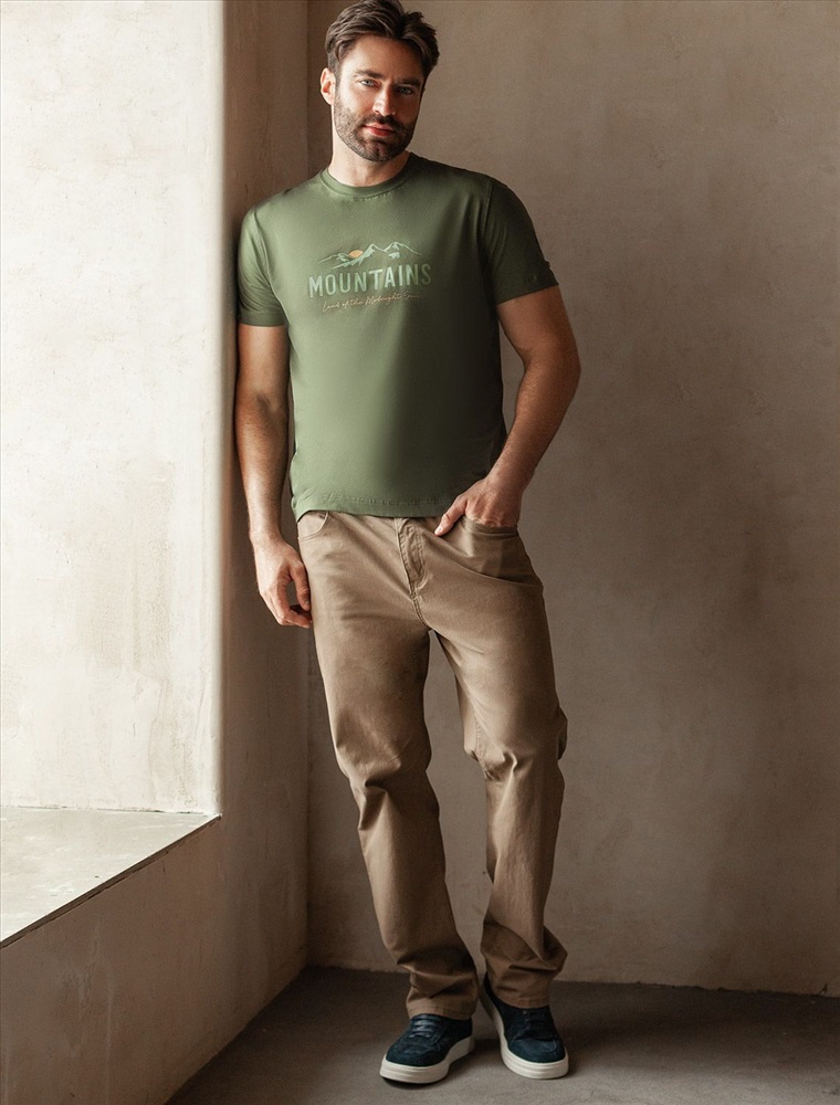 Размер товара на первом фото: 54 Футболка выполнена из премиального хлопка с эластаном. Авторский принт нанесен фактурными красками с устойчивым покрытием. Изделие комфортно сидит по фигуре, не сковывая движений. За счет среднего объема, хорошо подойдет как первый слой под пиджак, кардиган или бомбер. На рукаве нашивка из эко-кожи с логотипом бренда.