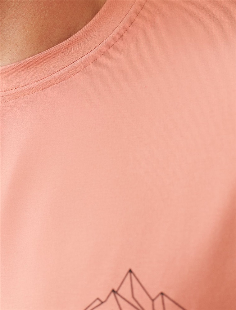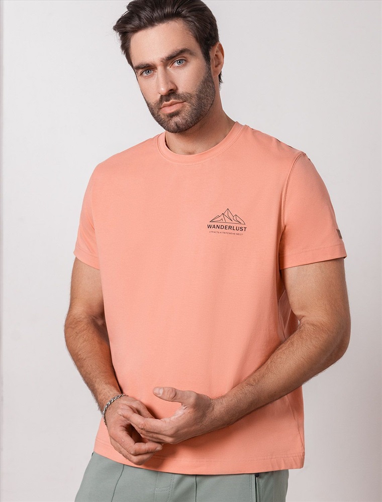 Футболка выполнена из премиального хлопка с эластаном. Авторский принт нанесен фактурными красками с устойчивым покрытием. Изделие комфортно сидит по фигуре, не сковывая движений. За счет среднего объема, хорошо подойдет как первый слой под пиджак, кардиган или бомбер. На рукаве нашивка из эко-кожи с логотипом бренда.