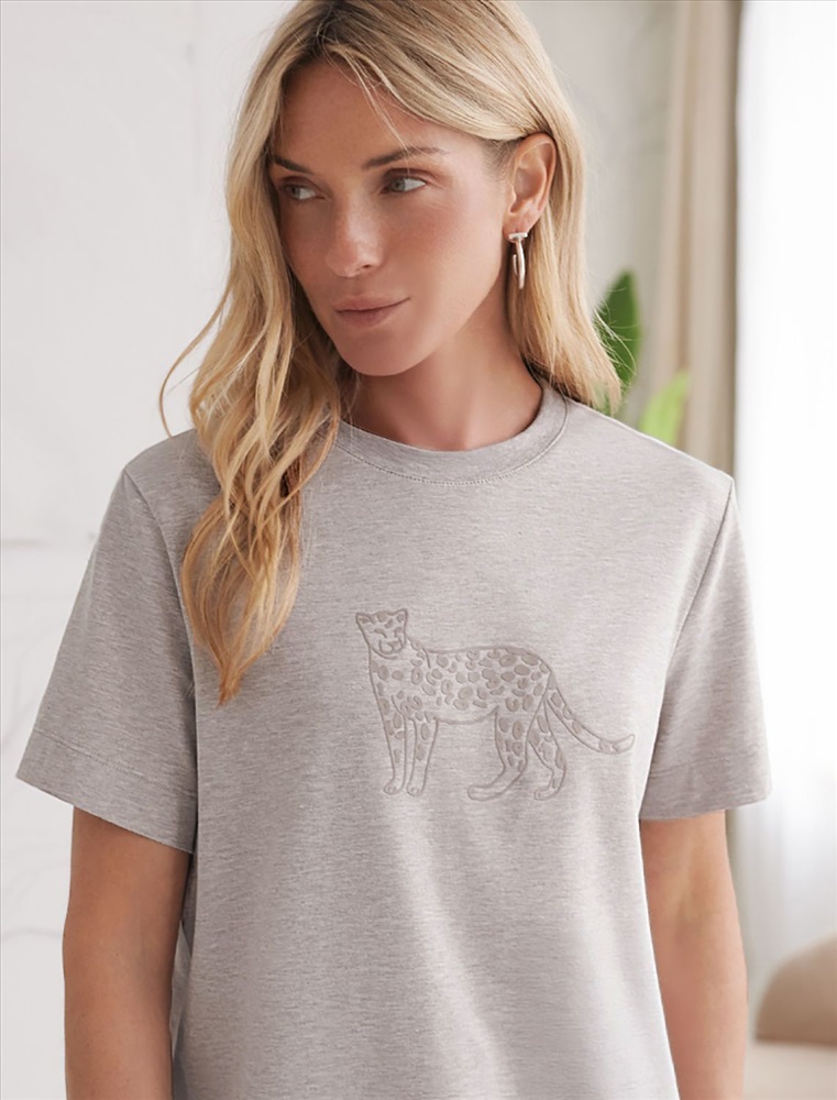 Плотность: 170 Г/м2 Футболка выполнена из премиального хлопка.Принт "леопард" нанесен фактурными красками с устойчивым покрытием. Наличие эластана в составе гарантирует комфорт и формоустойчивость. Изделие дополнено фирменным металлическим логотипом бренда. Комментарии к товару