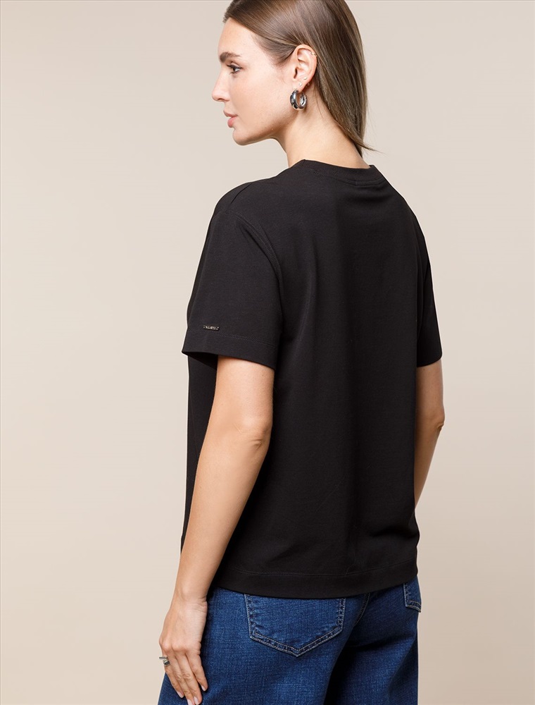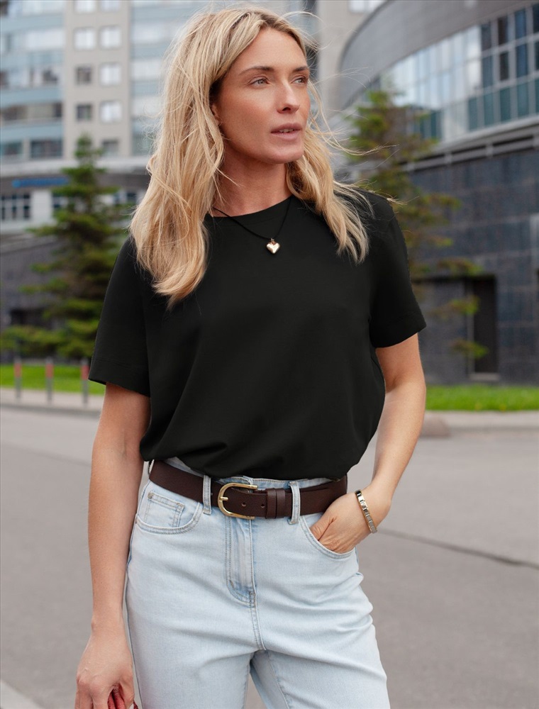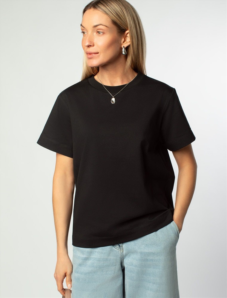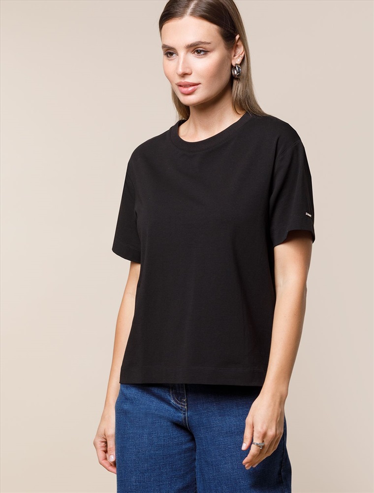 Параметры модели на первом фото: Рост 170, бюст 89, талия 63, бедра 92 Футболка выполнена из премиального хлопка. Базовая модель, которая хорошо будет сочетаться в гардеробе с любым низом и любым дополнительным верхом вне зависимости сезона. Эластан в составе способствует формоустойчивости и меньшей сминаемости. Изделие украшено логотипом бренда. Комментарии к товару