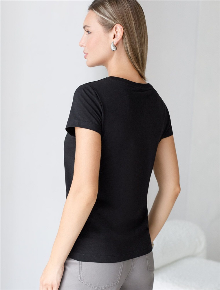 Футболка выполнена из премиального хлопка. Добавление эластана в состав изделия способствует формоустойчивости. Самое высокое качество хлопковых волокон обеспечивает комфорт даже в жаркое время года. Идеально держит форму и сохраняет внешний вид в течение долговременного использования. Удобная форма для любого гардероба.