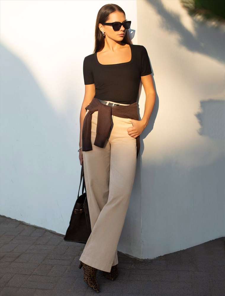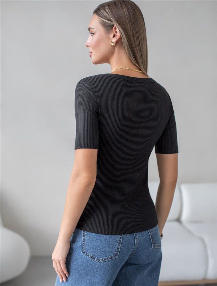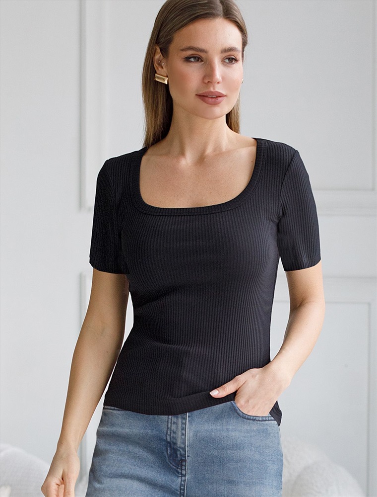 Параметры модели на первом фото: Рост 170, бюст 89, талия 63, бедра 92 Футболка выполнена из трикотажа в широкий рубчик. Модель с круглым вырезом. Эластичный хлопковый трикотаж сидит по фигуре, не сковывает движений и очень комфортный в носке. Фактура вертикальных полос визуально стройнит и вытягивает силуэт. Базовое изделие хорошо впишется в любой гардероб. Идеально подходит для многослойных образов.