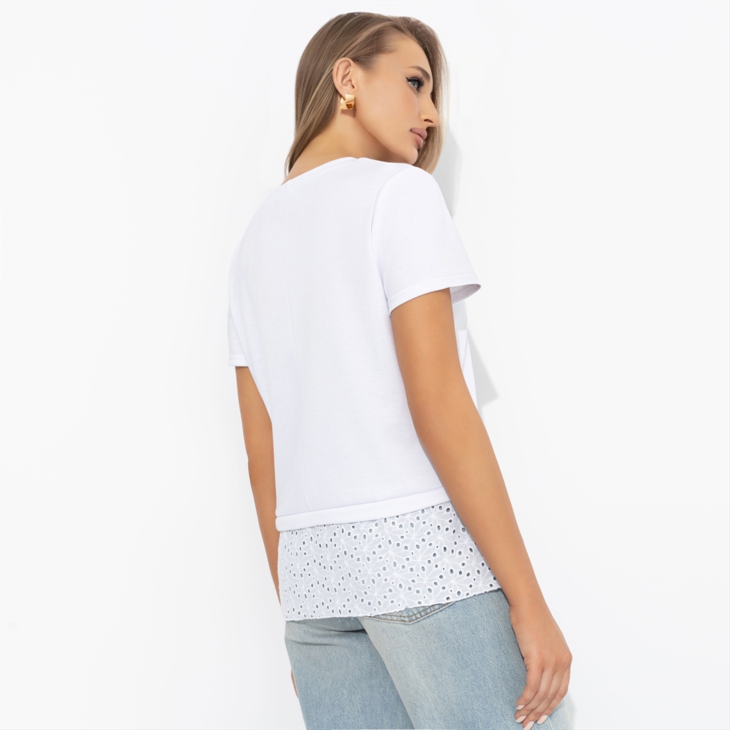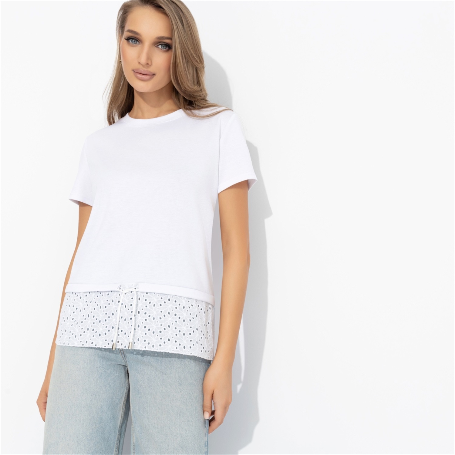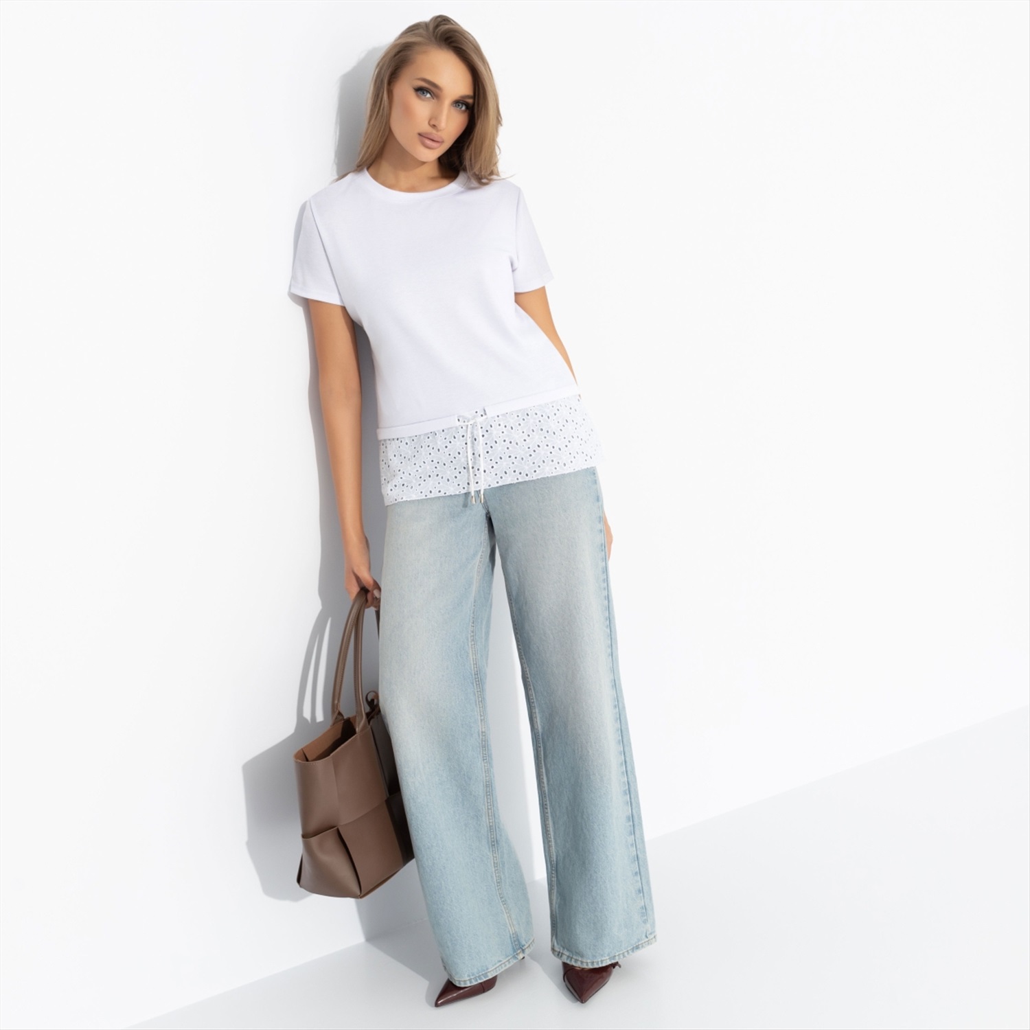 Состав: Трикотаж «милано», «шитьё хлопок» (65% п/э, 30% вискоза, 5% стрейч) Плотность ткани: Средняя Тип ткани: Трикотаж Вид застежки: Нет Декоративные элементы: Завязки Дополнительный цвет ткани: Белый Карманы: Нет Основной цвет ткани: Белый Отрезная талия: Нет Подклад: Нет Резинка по талии: Нет Рисунок/раппорт: Нет, все изделия идентичны Сезон: Круглогодичный Силуэт: Прямой Стиль: Повседневный Параметры модели на фото:
