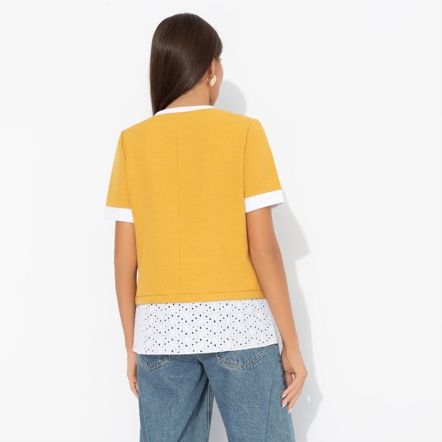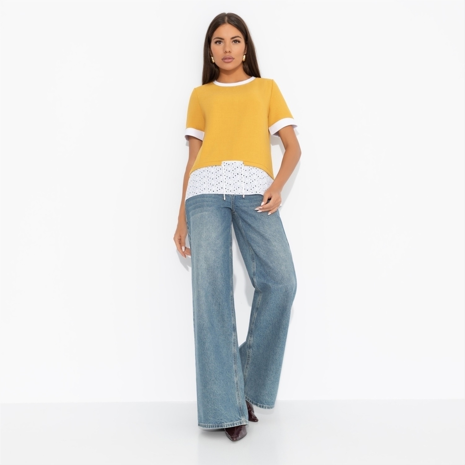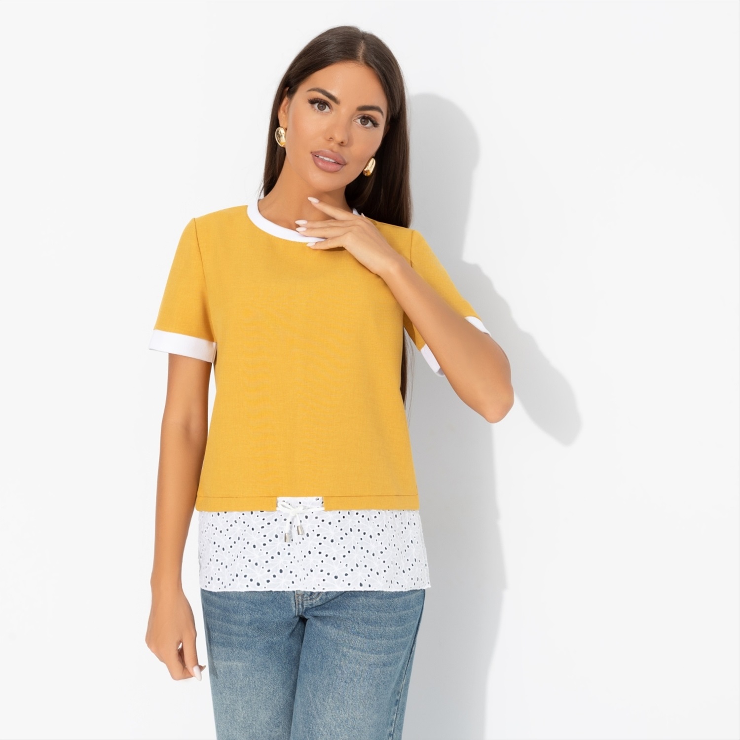 Состав: Лён «тайвань», хлопок шитьё (80% п/э, 15% лен, 5% эластан) Плотность ткани: Средняя Тип ткани: Текстиль Вид застежки: Нет Декоративные элементы: Завязки Дополнительный цвет ткани: Белый Карманы: Нет Основной цвет ткани: Жёлтый Отрезная талия: Есть Подклад: Нет Резинка по талии: Нет Рисунок/раппорт: Нет, все изделия идентичны Сезон: Круглогодичный Силуэт: Прямой Стиль: Повседневный Параметры модели на фото: