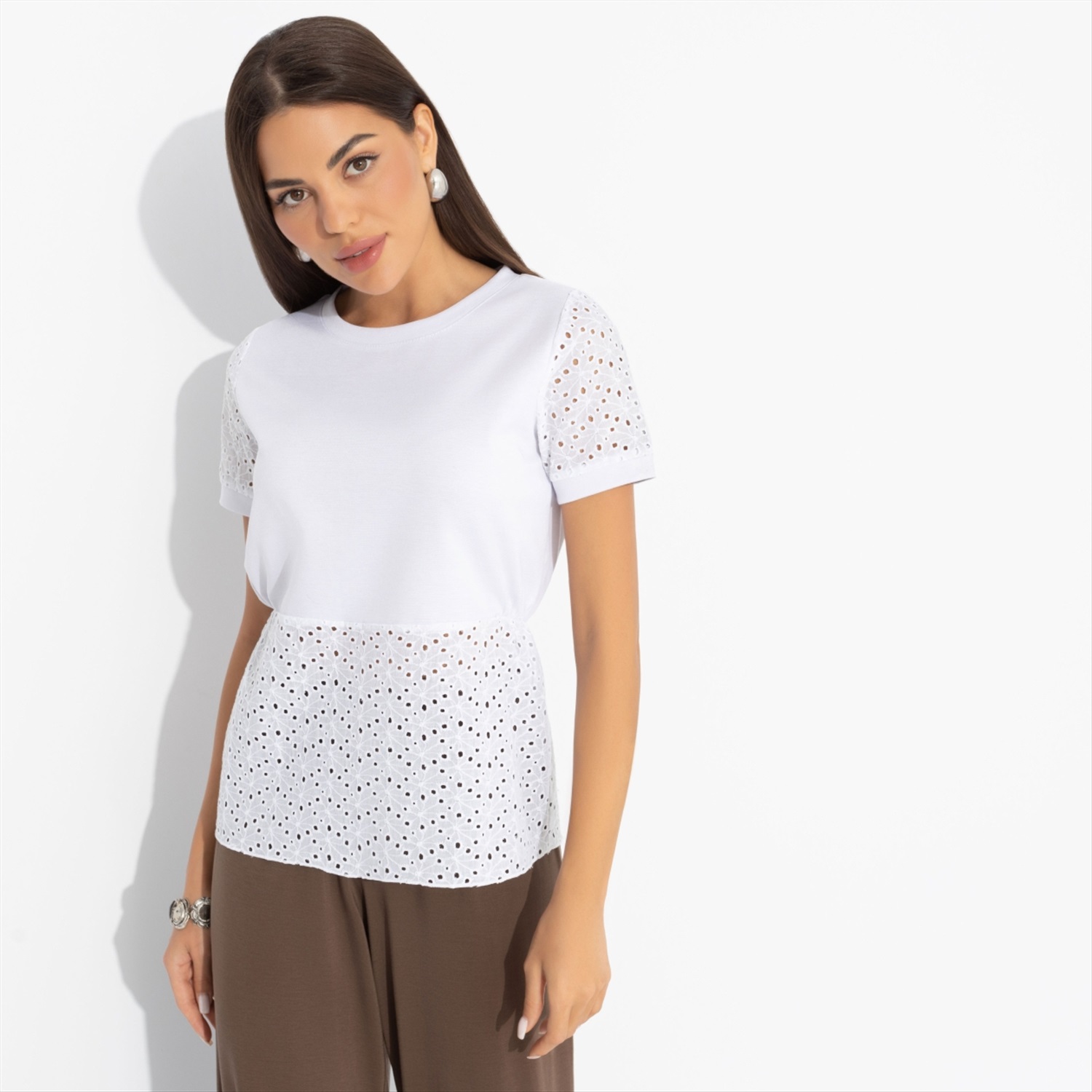 Состав: Трикотаж «милано», «шитьё хлопок» (65% п/э, 30% вискоза, 5% стрейч) Плотность ткани: Средняя Тип ткани: Трикотаж Вид застежки: Нет Карманы: Нет Основной цвет ткани: Белый Отрезная талия: Есть Подклад: Нет Резинка по талии: Есть Рисунок/раппорт: Каждое изделие уникально из-за расположения рисунка на ткани Сезон: Круглогодичный Силуэт: Прямой Стиль: Повседневный Параметры модели на фото: