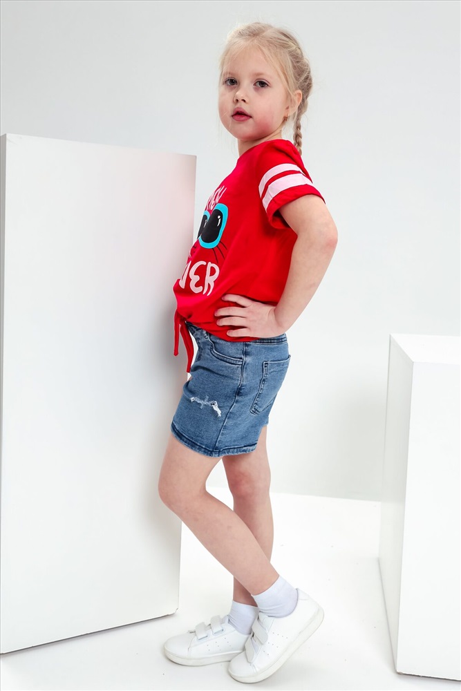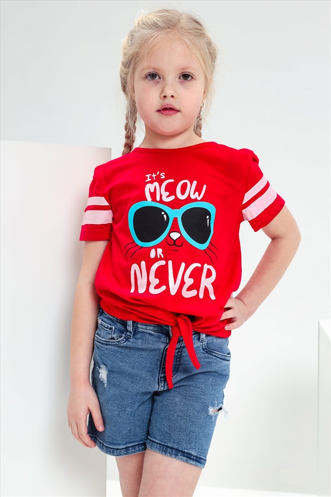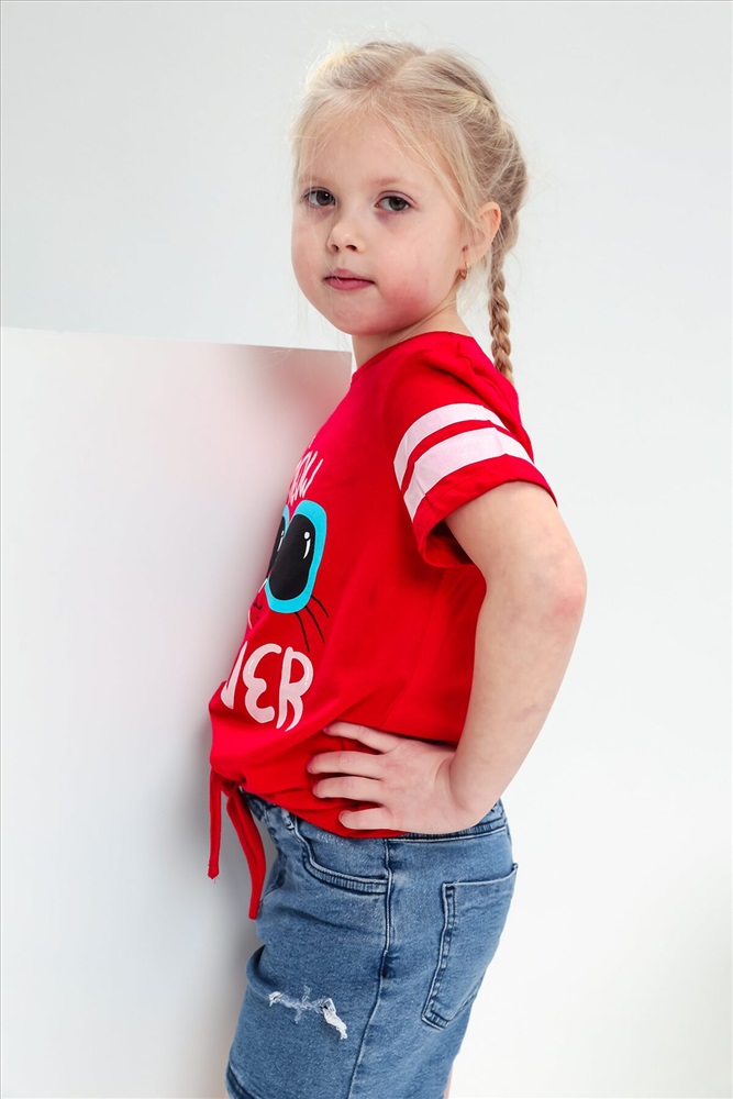 Страна производства: Россия Футболка для девочки с завязками и ярким принтом.