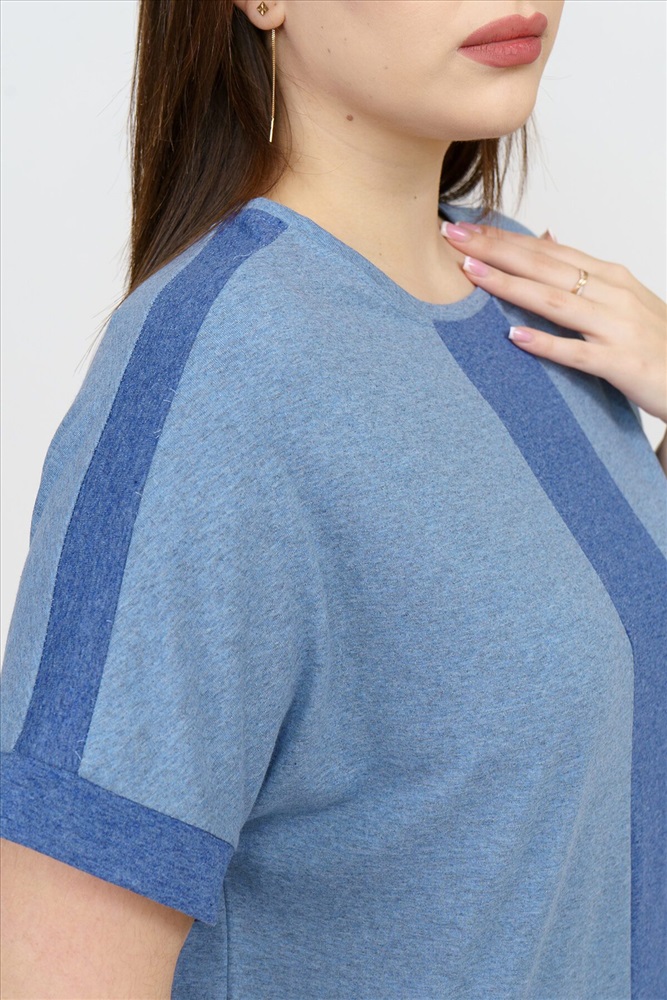 ID товара: 926488 Состав: Хлопок 70%, Полиэстер 30% Сезон: Весна/Лето Длина: Средняя Фасон: Прямой Рукав: Короткий Вырез горловины: Округлый Основная ткань: Хлопок Стиль: Повседневный Вид ткани: Кулирка Страна бренда: Россия Страна производства: Россия Футболка для женщин, прямого силуэта, укороченная. Вырез горловины округлый. На полочке и плечах изделия контрастная вставка. Комментарии к товару