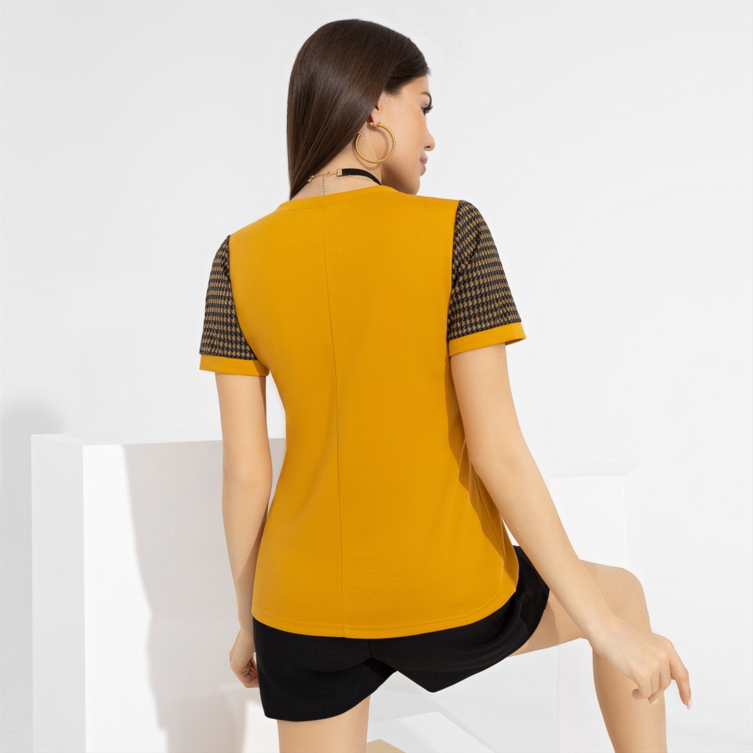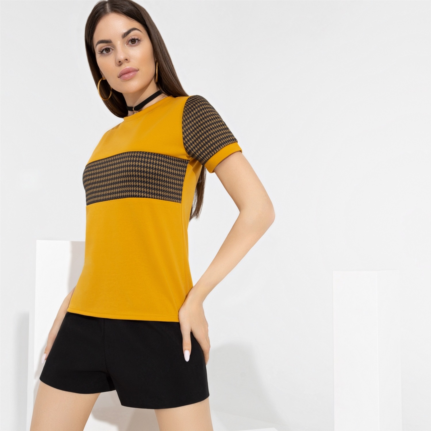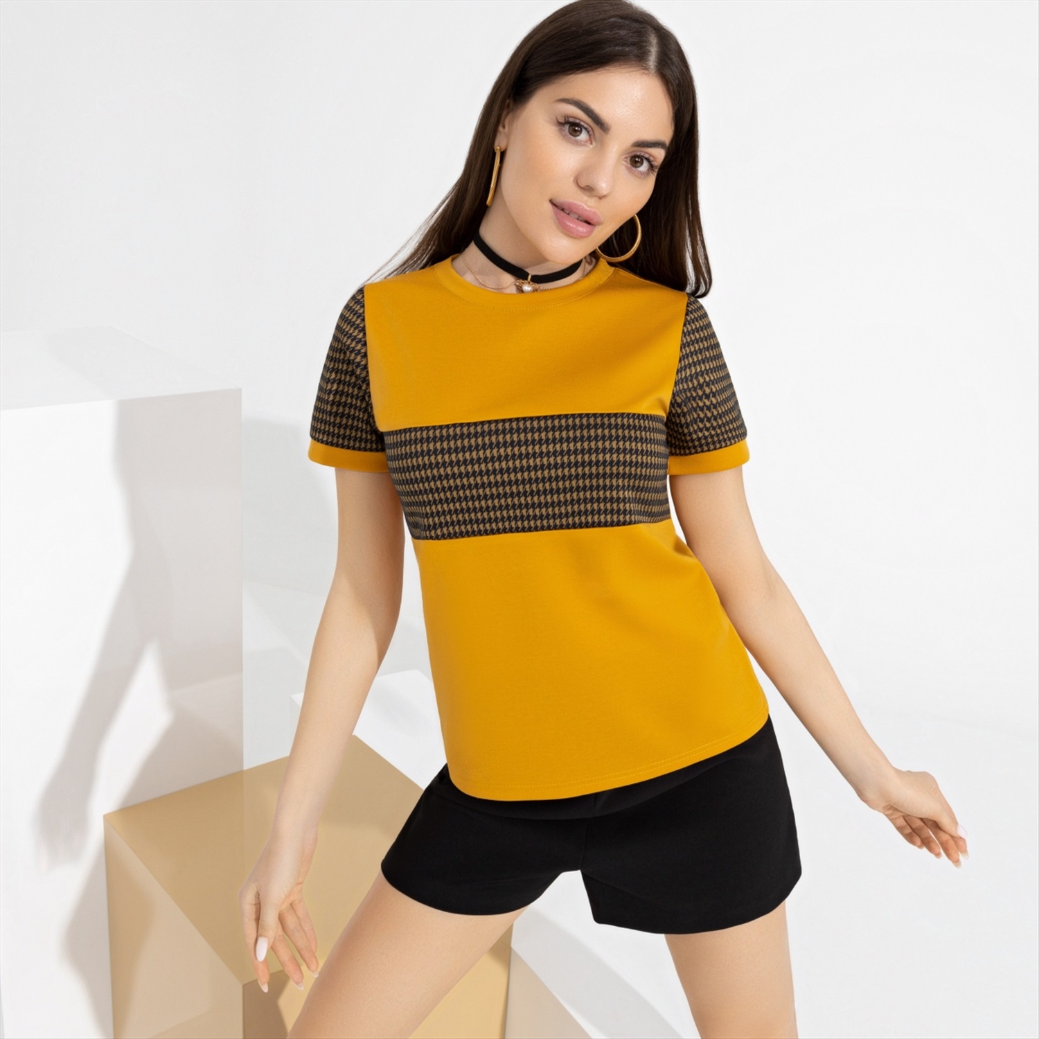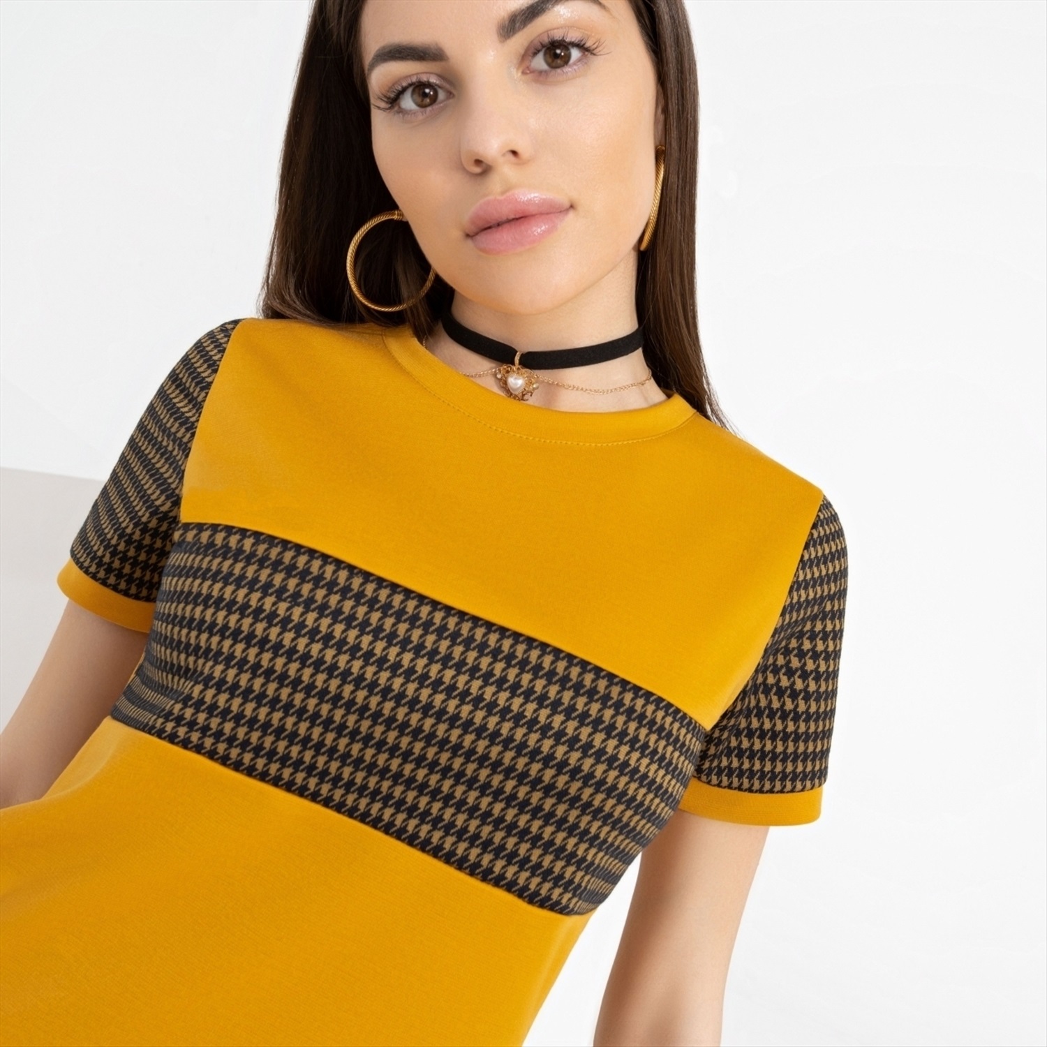 Состав: Трикотаж «милано» (65% п/э, 30% вискоза, 5% стрейч) Плотность ткани: Средняя Тип ткани: Трикотаж Вид застежки: Нет Дополнительный цвет ткани: Черный Карманы: Нет Основной цвет ткани: Жёлтый Отрезная талия: Нет Подклад: Нет Резинка по талии: Нет Рисунок/раппорт: Каждое изделие уникально из-за расположения рисунка на ткани Сезон: Круглогодичный Комментарии к товару
