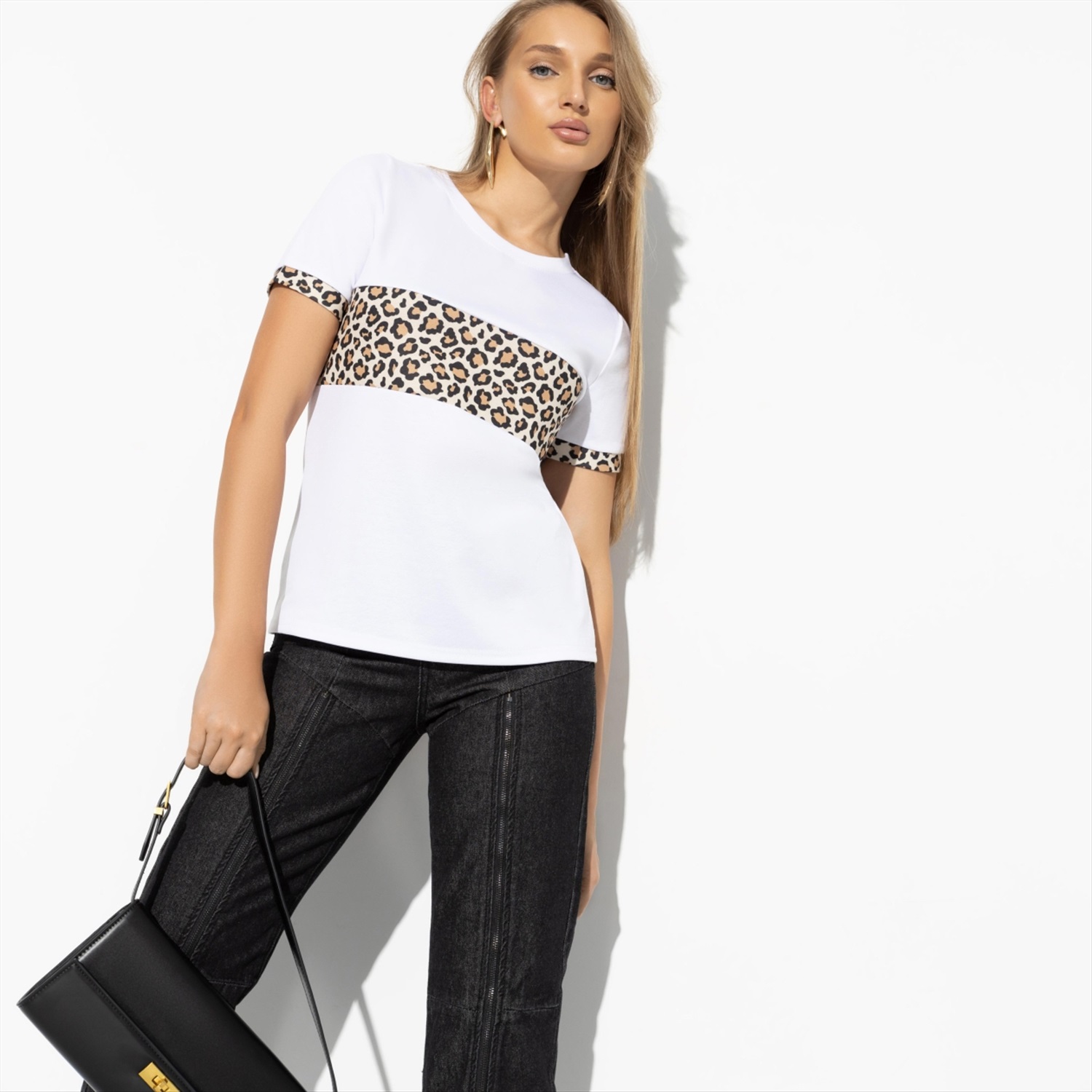 Откройте свой уникальный стиль с этой футболкой, которая представляет собой смелое сочетание современной элегантности и анималистичного вдохновения. Насладитесь ощущением индивидуальности, представленной в каждом шве этой футболки. Выделитесь из толпы, будучи олицетворением стиля и утонченности. Изготовленная из высококачественного трикотажа «милано» с добавлением вискозы и стрейча, эта футболка обеспечивает максимальный комфорт и превосходное качество. Почувствуйте нежность материалов, окутывающих ваше тело, и наслаждайтесь свободой движения в любой ситуации. Эта футболка с белым основанием и анималистичной вставкой не просто одежда, это выражение вашей уверенности и чувства стиля. Сочетайте ее с джинсами для повседневного образа или с элегантной юбкой для выхода в свет. Дайте своему образу неповторимый шарм с этой футболкой, которая подчеркнет вашу неповторимость.