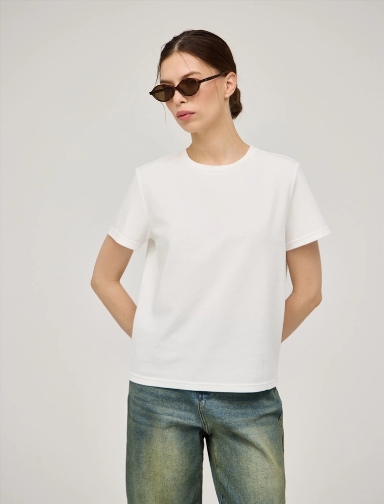 Видео: https-//hassfashion.ru/upload/iblock/0c8/ut7h3a2aeni0j30zqceqoih8z4a2dcwf.mp4 весна-лето 70% Хлопок, 20% Вискоза, 10% Эластан Футболка прямого силуэта с регулярной горловиной и короткими втачными рукавами. Ткань — хлопок и вискоза с добавлением эластана, что продлевает срок эксплуатации изделия. Выполнена в оттенках коллекции.