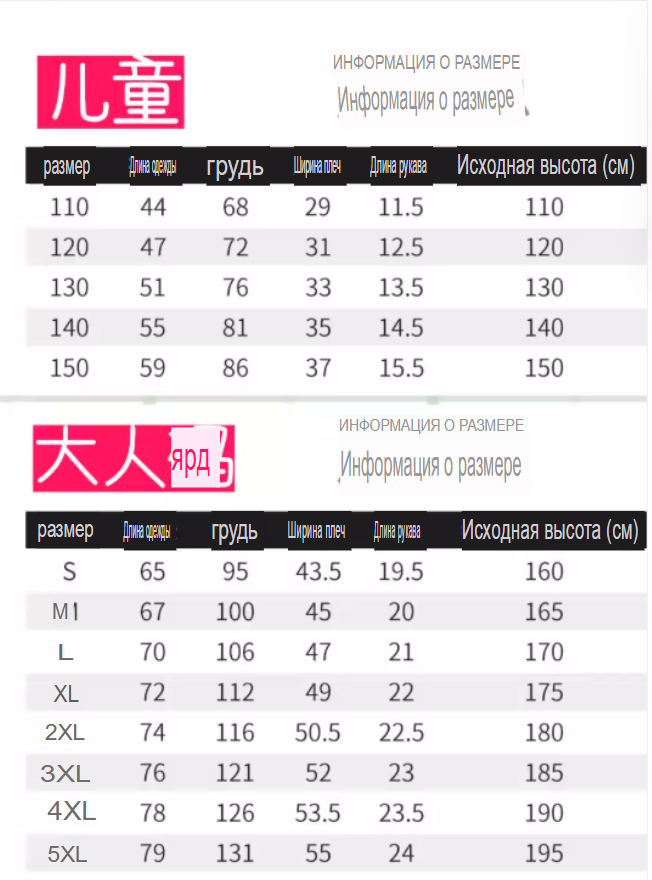 Размер: 110, 120, 130, 140, 150, 160, 165, 170, 175, 180, 185, 190