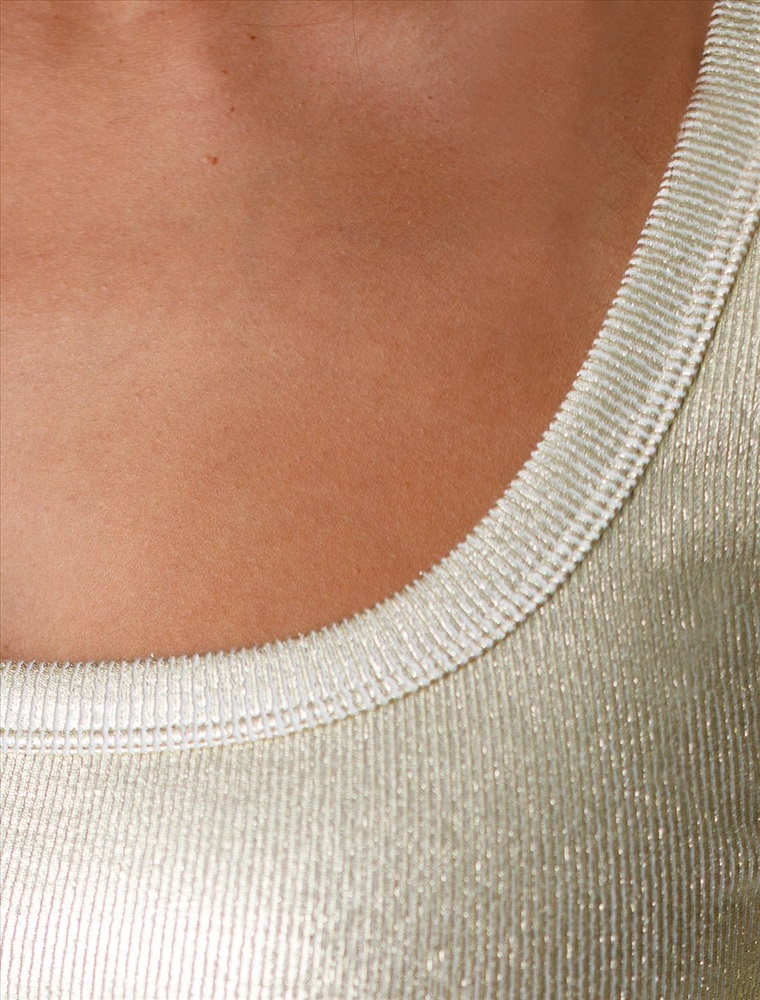 Стильная футболка золотистого цвета с U вырезом выполнена из премиального хлопка с добавлением эластана. Эффектное матовое покрытие металлик придает футболке изысканный блеск. Чуть удлиненные рукава и глубокий круглый вырез, открывающий область декольте, добавляют женственность и элегантность образу. Мелкий рубчик визуально вытягивает силуэт, за счет эластана в составе материал прекрасно тянется и садится на любую фигуру, в том числе большие размеры. Ткань износостойкая, сохраняет свой превоначальный вид даже после многочисленных стирок, отличается мягкостью и приятными тактильными ощущениями, такой материал не раздражает кожу, дарит ощущение уюта даже при длительном ношении, а воздухопроницаемость позволяет коже свободно дышать.