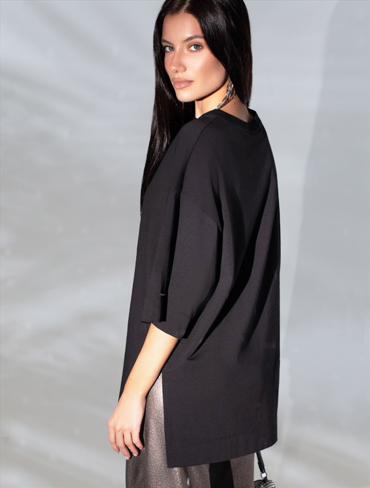 Такая эффектная длинная футболка станет универсальным дополнением гардероба, позволяя создавать разнообразные образы с акцентом на современный стиль и утонченность деталей. Благодаря стильному дизайну с боковыми разрезами эта футболка станет идеальным вариантом для создания легких и непринужденных луков.