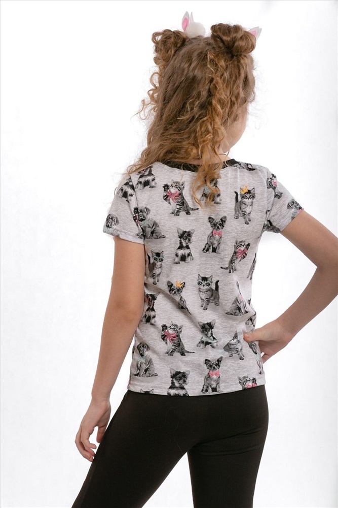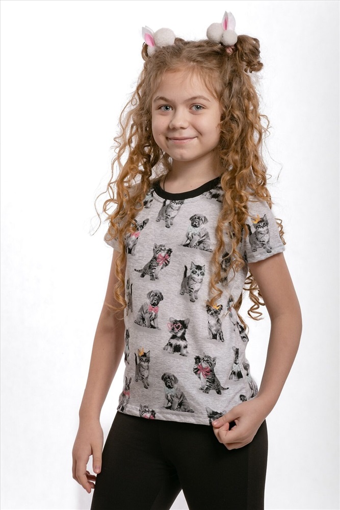Страна производства: Россия Футболка детская с коротким рукавом. Данная модель отшита из трикотажного полотна (кулирка). Горловина обработана эластичным трикотажным полотном - рибана. Замечательная стильная футболочка порадует вашу модницу. Отлично подходит для прогулок и отдыха.