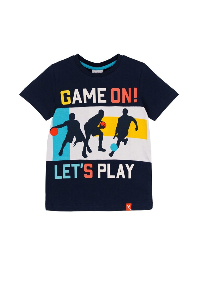 ID товара: 1073704 Состав: 95% Хлопок, 5% Эластан Сезон: Демисезон Длина: Средняя Фасон: Прямой Рукав: короткие Вырез горловины: Округлый Рисунок: Надпись Декоративные элементы: Принт Основная ткань: Хлопок Стиль: повседневный Страна бренда: Германия Страна производства: Китай Футболка детская для мальчика. Футболка из качественного и приятного на ощупь трикотажа джерси с высоким содержанием хлопка 95%. Благодаря наличию эластана в составе ткани изделие проще в уходе и держит форму. Комментарии к товару