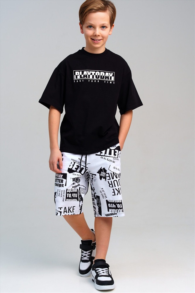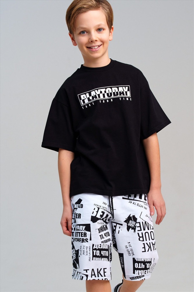 ID товара: 1074846 Состав: 95% Хлопок, 5% Эластан Сезон: Демисезон Длина: Средняя Фасон: Прямой Рукав: короткие Вырез горловины: Округлый Рисунок: Надпись Декоративные элементы: Принт Основная ткань: Хлопок Стиль: повседневный Страна бренда: Германия Страна производства: Китай Футболка для мальчика подростка. Футболка оверсайз из качественного и приятного на ощупь трикотажа джерси с высоким содержанием хлопка 95%. Благодаря наличию эластана в составе ткани изделие проще в уходе и держит форму. Комментарии к товару